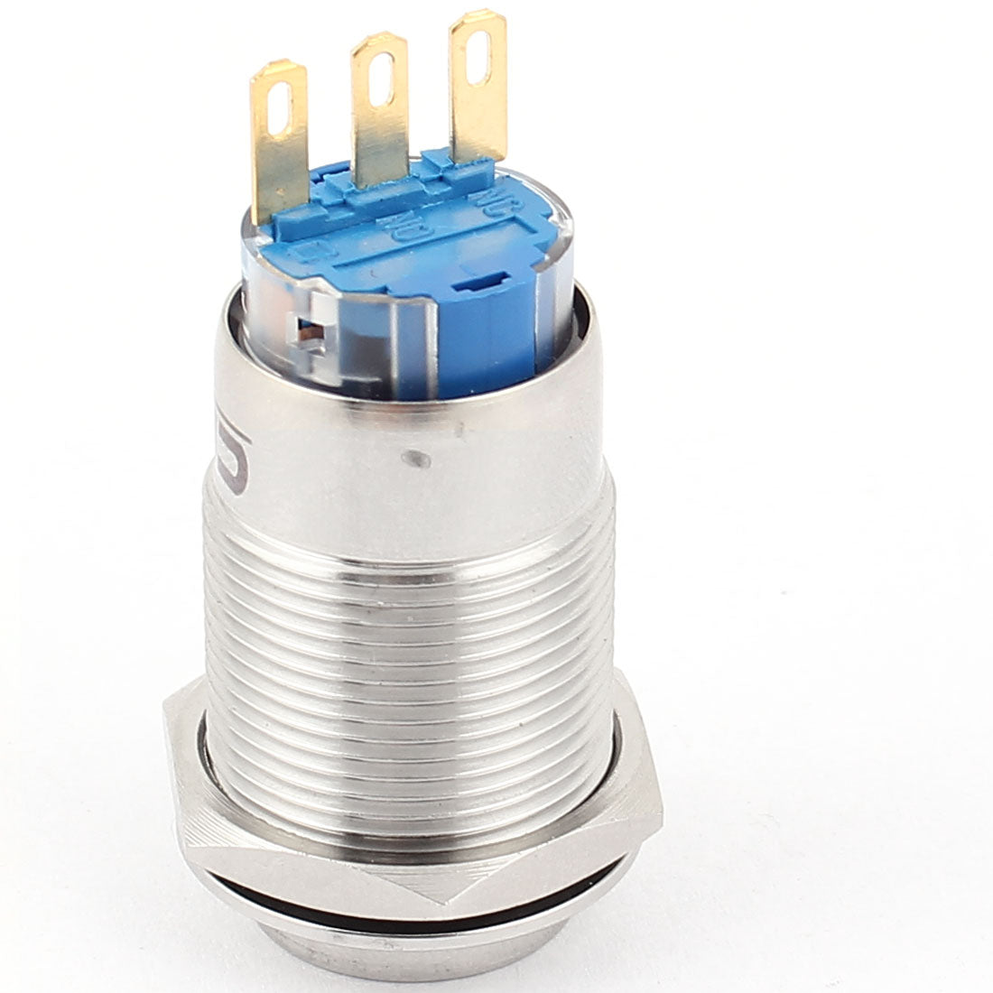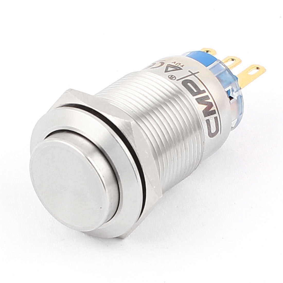 Dieser Druckknopfschalter aus Metall ist für Montagelöcher mit 19 mm Durchmesser geeignet.