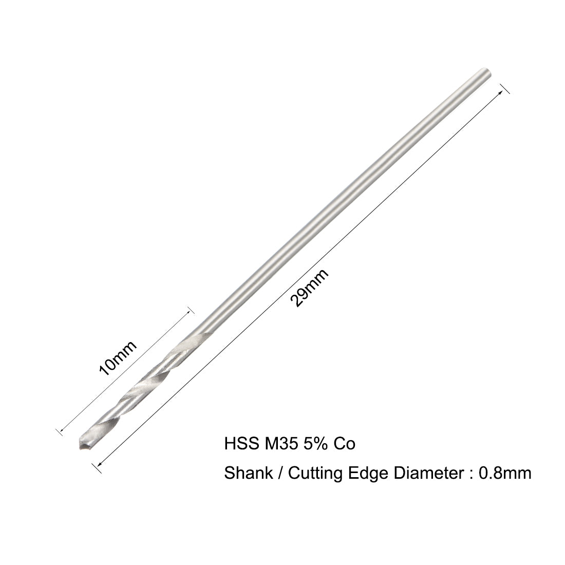 0.8mm Twist Drill High Speed Steel Bit HSS-Co 5% M35 Cobalt 20pcs