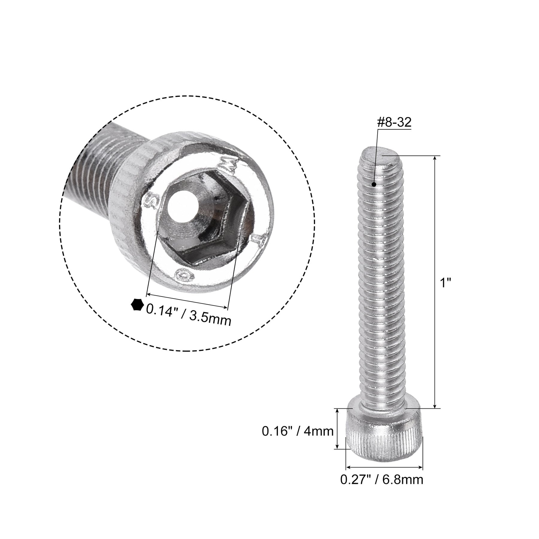 #8-32x1" Hex Socket Head Cap Screw Bolts 304 Stainless Steel Polished 25pcs