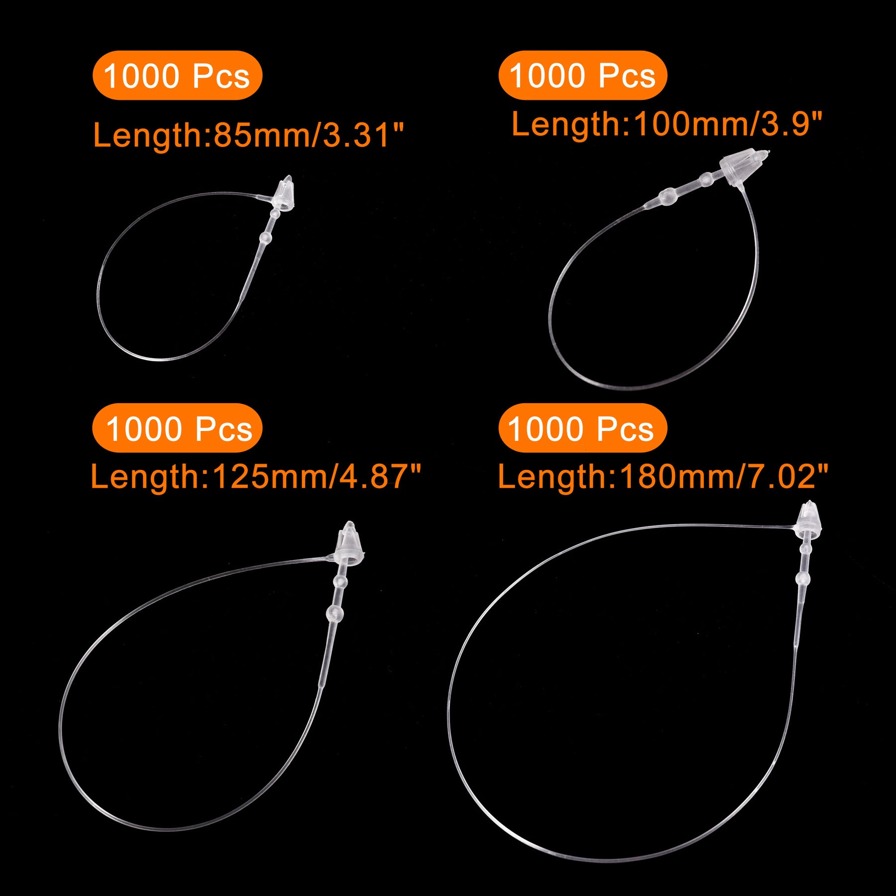 What is this? Suitable for attaching labels to garments, shoes, belts, gift tags, bookmarks, bags, DIY, etc. What will I get? Material: PP,Length:85,100,125,180mm/3,3.9,5,7inch(each size 1000pcs);Color:clear;Package Contents: 1Set Tags Ties
