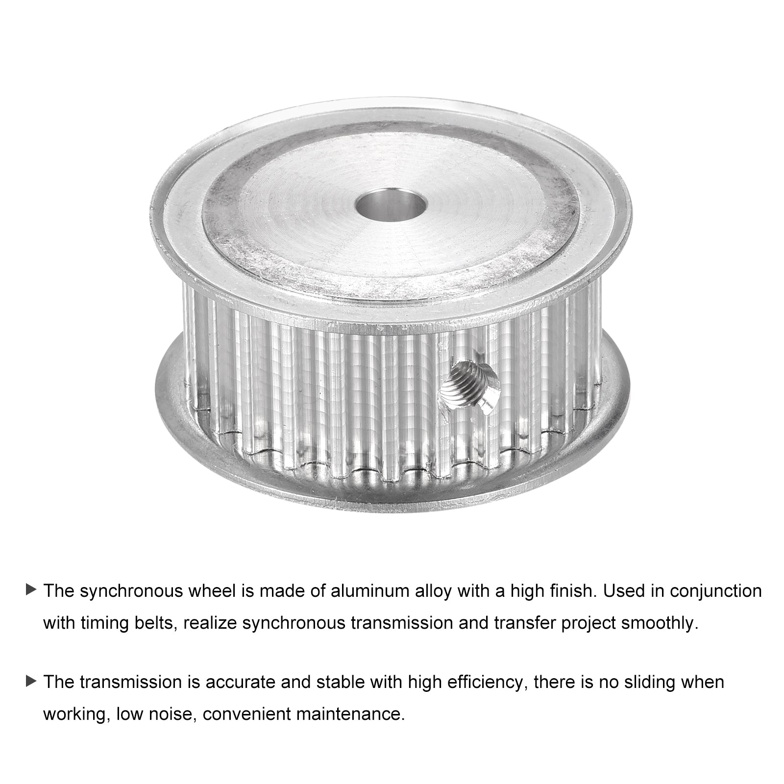 The silver color synchronous wheel is made of aluminum alloy with a high finish. Used in conjunction with timing belts, realize synchronous transmission and transfer project smoothly. Widely used in mechanical transmission such as 3D printers, drilling machines, milling machines, gear machines, CNC lathes, etc.