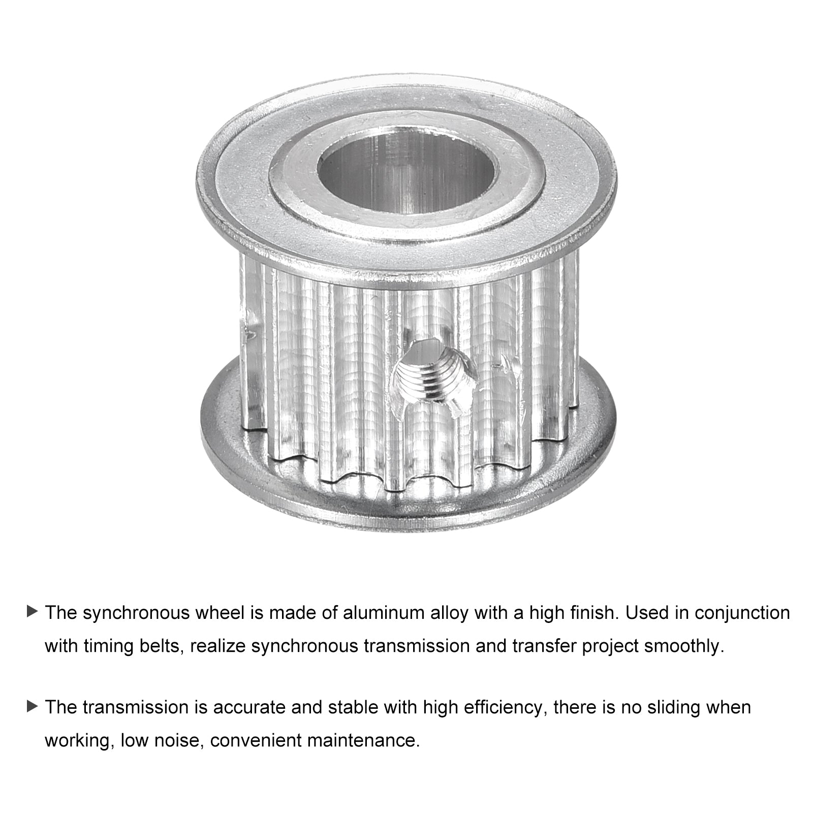 The silver color synchronous wheel is made of aluminum alloy with a high finish. Used in conjunction with timing belts, realize synchronous transmission and transfer project smoothly. Widely used in mechanical transmission such as 3D printers, drilling machines, milling machines, gear machines, CNC lathes, etc.