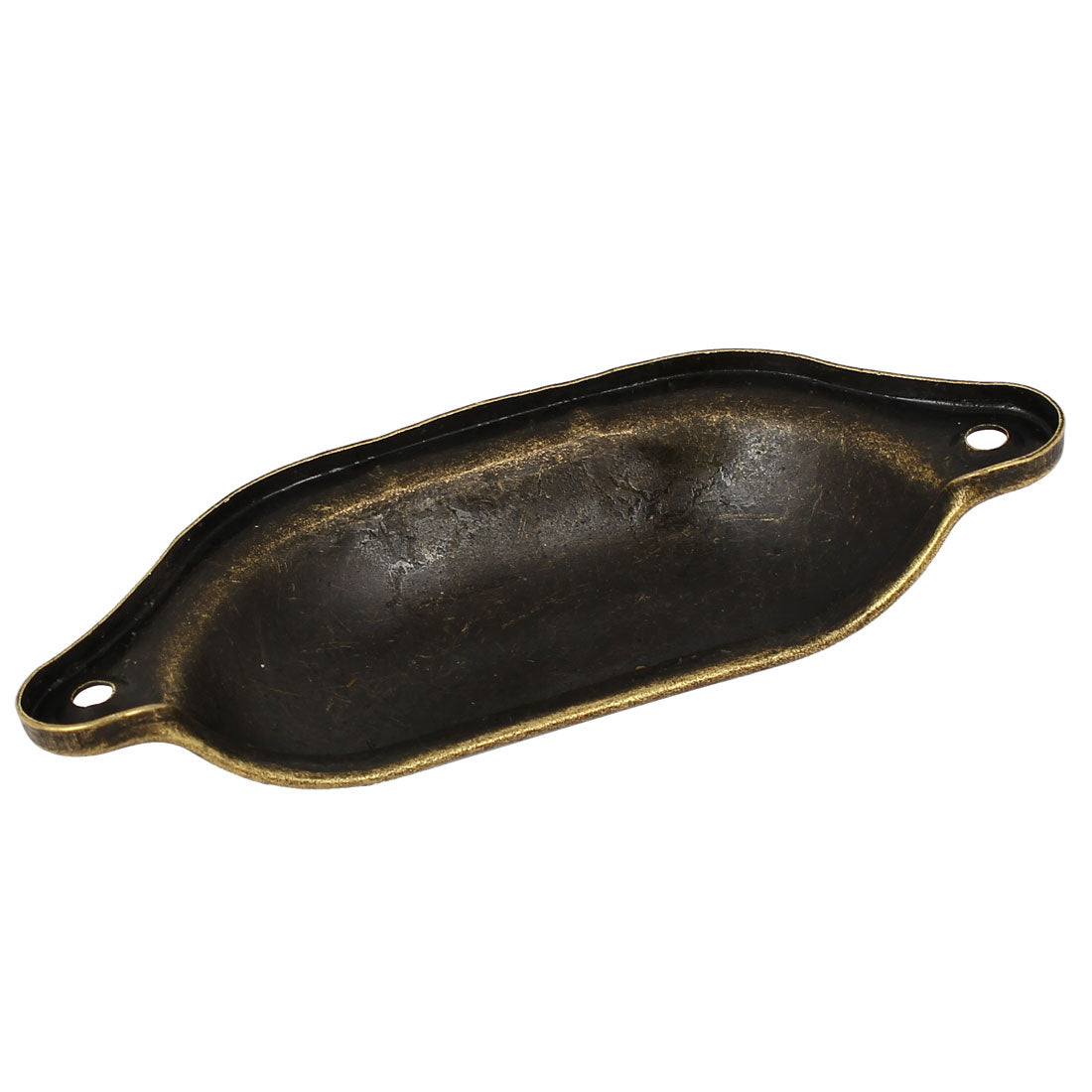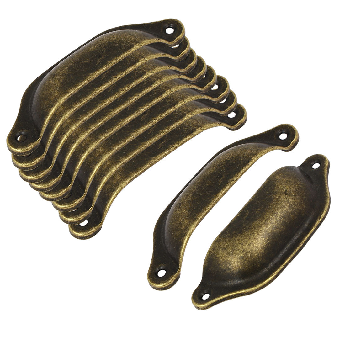 Made of metal material, and adopts semicircle shape.Vintage style upholstery pull handle is a nice choice for home decoration.Used for cabinet, drawer, bin, wardrobe etc.Mounting screws are not included.