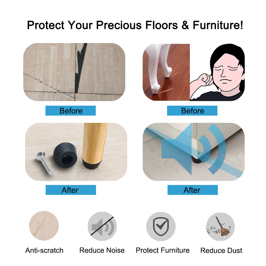 The rubber feet can protect your beautiful hardwood, ceramic tile and linoleum floors from scratches and save your furniture feet.