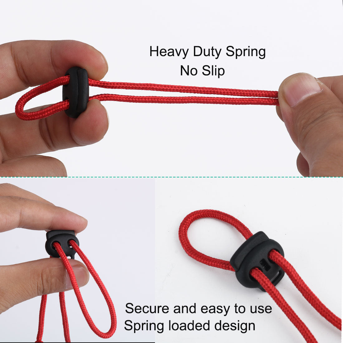 1. Made of plastic, durable and lightweight; The tough internal spring is built for long-lasting performance, flexible enough for easy use; Cord locks can be used in dryer or washing machine.