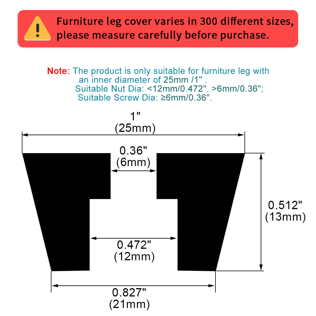 3. Please check your furniture leg dimension to fit the furniture feet cover before buying this item.