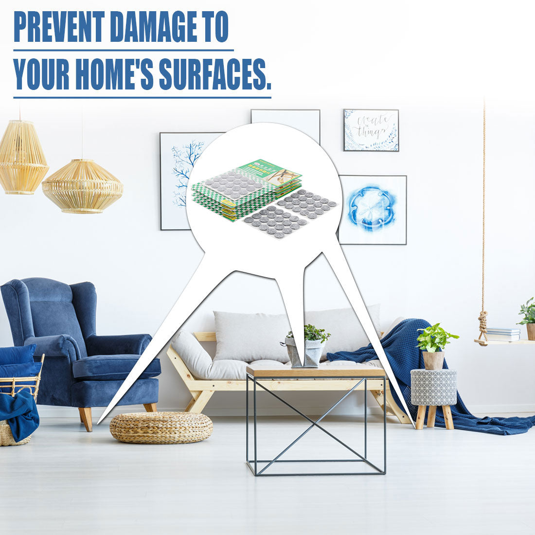 Soft Touch Felt Pads protect hardwood, ceramic tile, linoleum floors and all hard surfaces from marring and scratches. Long-lasting, heavy-duty felt pads with extra-strength, self-stick adhesive. Reduces friction and noise while moving furniture. Can be used on tables, cedar chests, chairs, curio cabinets, desks, and a variety of other furniture items. 4 sheet 400pcs value pack of 15mm diameter round.