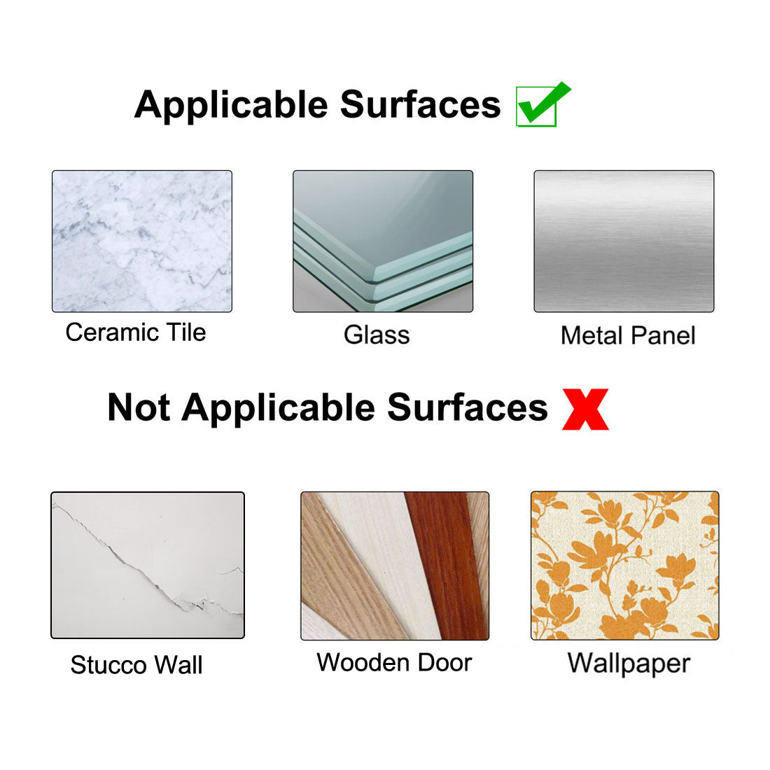 Tips: Does NOT work well on wood, stained glass, and surfaces that are rough, uneven, or textured. If the hooks lose its suction due to long-time use, please rinse it under hot water, then it will work again. Do not expose the suction hooks under sunlight, which might fade the suction color.