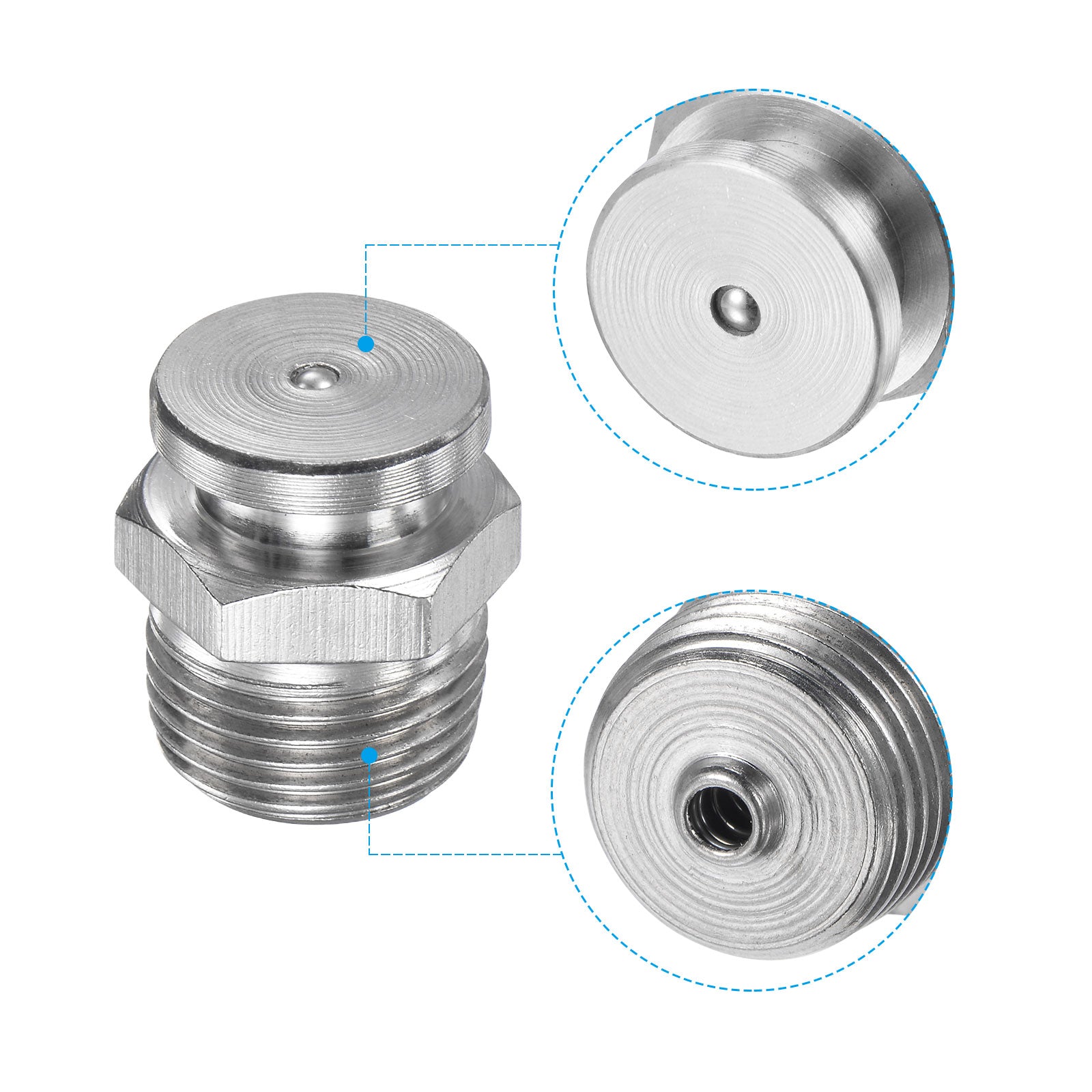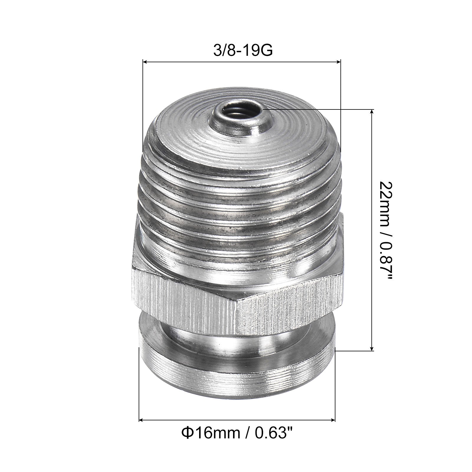 Specifications: Material: 304 Stainless Steel Thread Type: Male Thread Size: 3/8-19G Head Diameter: 16mm / 0.63 inch Total Height: 22mm / 0.87 inch