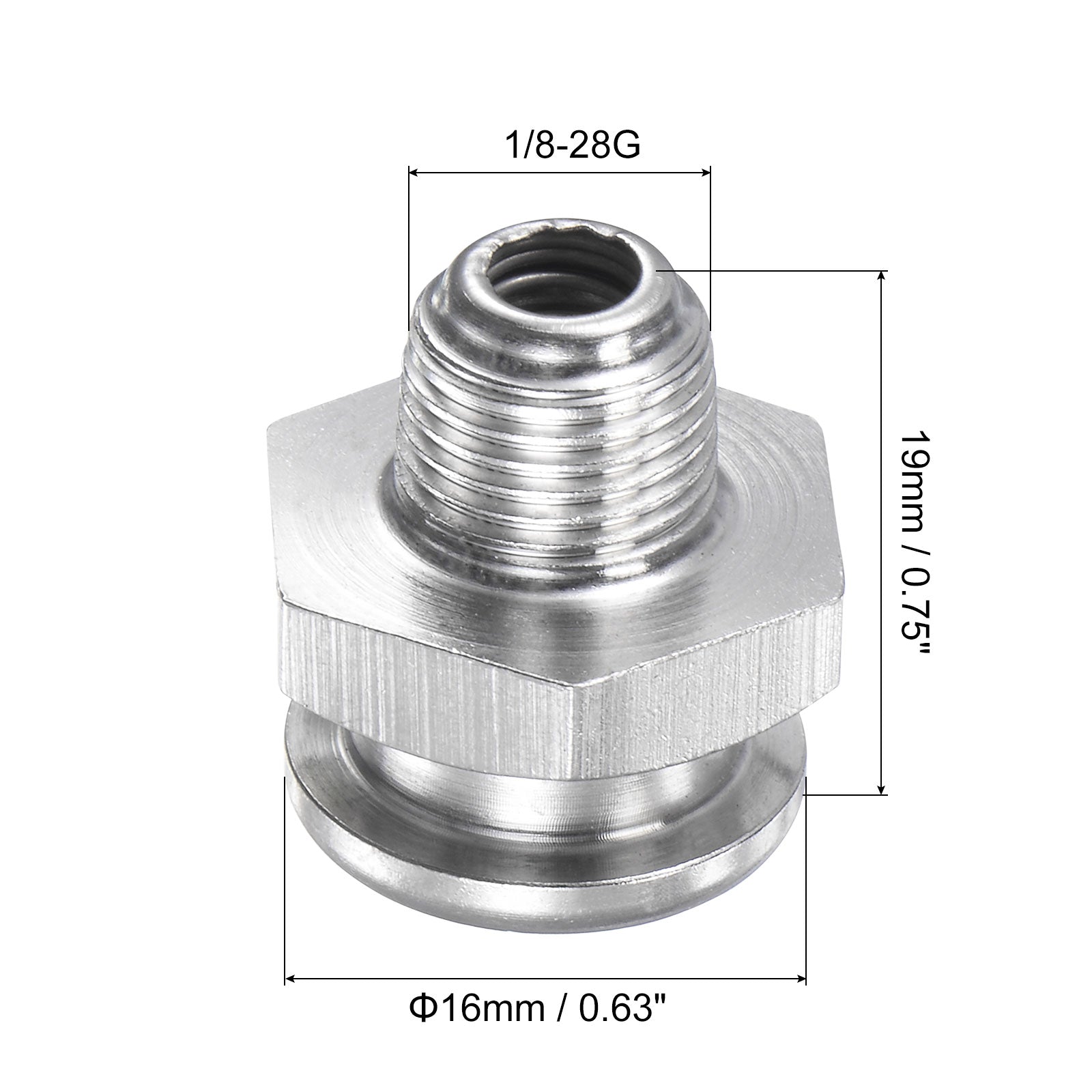 Specifications: Material: 304 Stainless Steel Thread Type: Male Thread Size: 1/8-28G Head Diameter: 16mm / 0.63 inch Total Height: 19mm / 0.75 inch