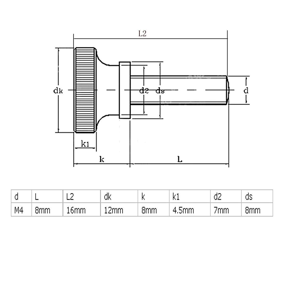 M4x8mm Round thumb screw with flat knurled head style. Knurled head provides extra grip for manual tightening. Usually found on thumb screws, a knurled surface on the head gives a better gripping surface, making it easier to tighten or loosen fasteners manually. Thumb screws are designed to be tightened and loosened by hand. Tools not necessary for tightening or loosening Knurled Thumb Screws are installed with your fingers and are used to hold light covers in place and other ornamental products.