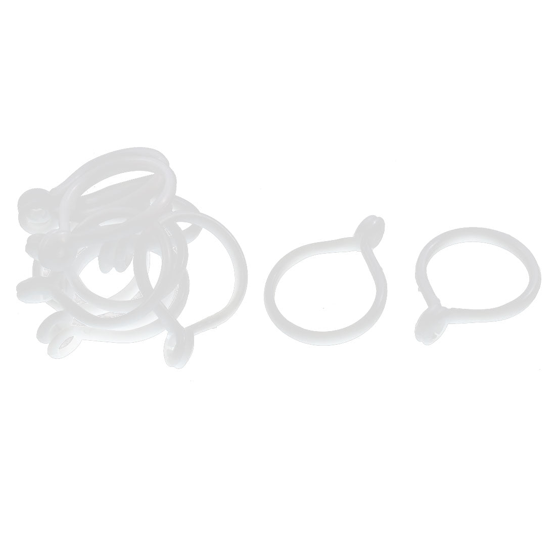 Detachable Opening with a Hole on the Bottom.The Hole on the Bottom can be Threaded with Hook.Curtain rings are made of plastic material, used for hanging curtains. They are for curtains hung on curtain tracks.easily removeable and replaceable.