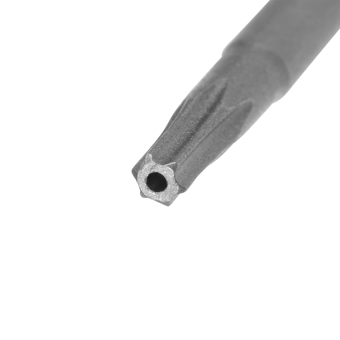 * Strong magnetic,can suck the screws easily when used it. * Exquisite workmanship, each edge can be accurately locked screws, no damage to the screw, and the screwdriver head. * Great replacement for missing, bent or broken torx head screwdriver bits. * The hole in the center in each bit causes it to be tamper resistance, designed to prevent Cam-Out the hex bits clicks onto most standard sockets, screwdrivers, drill/driver kits & Power tools attachments. * Made of S2 alloy steel, which is a commonly used material in hardware with high hardness. * Those bits fit for electric screwdrivers, hand screwdrivers, electric drills, air drills and so forth.