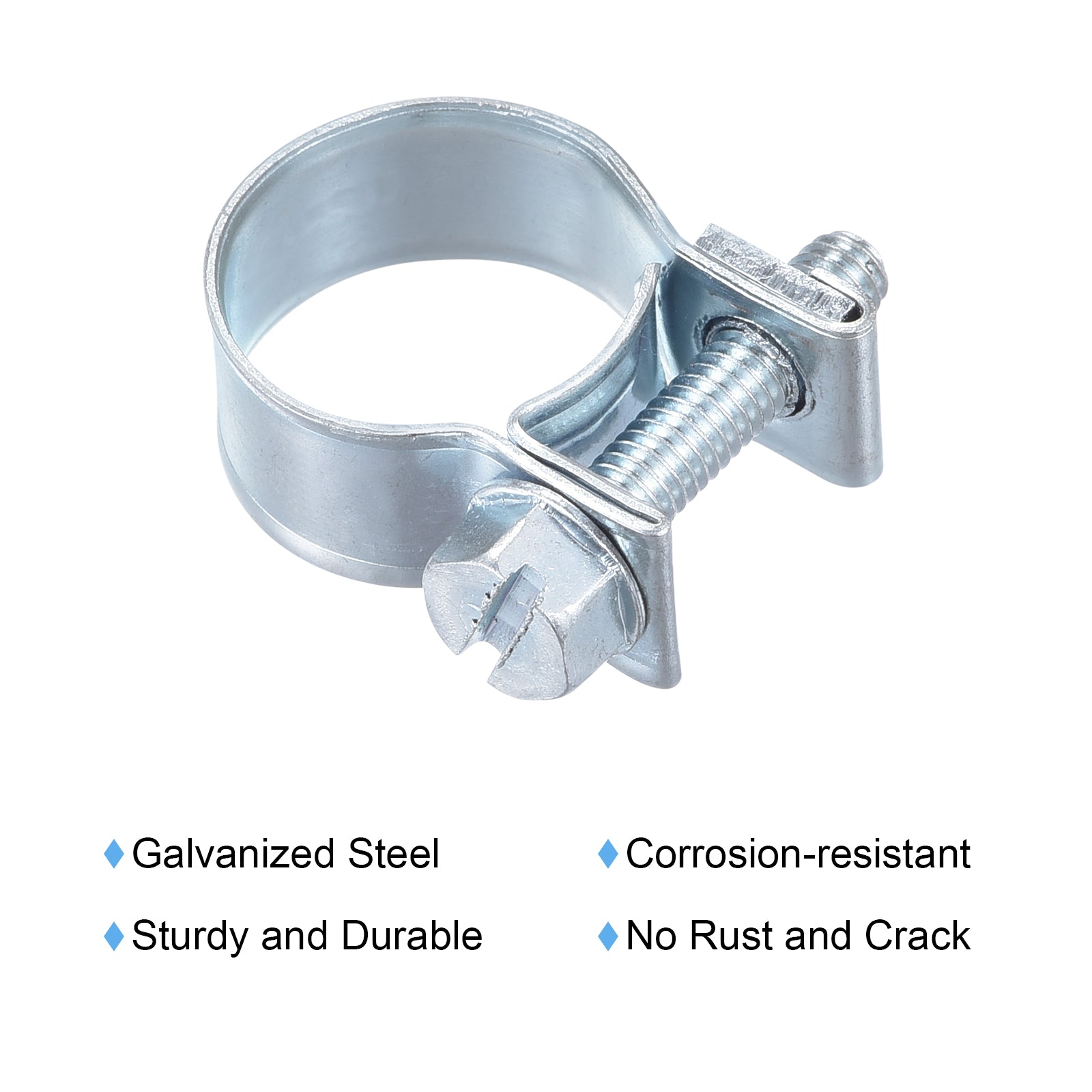 Made of galvanized steel, sturdy and durable, corrosion-resistant, will not rust and crack. The hose clamp has adjustable screws, which can be adjusted according to the diameter of the pipe, and can be installed and removed at any time with a screwdriver. The adjustable range of the clamp shows the minimum and maximum hose diameters it fits. These clamps are locking secure and tight, and are widely used in agriculture, material handling, ships, factories and buildings to fix indoor and outdoor hoses, tubes, cables, pipes, and fuel lines.