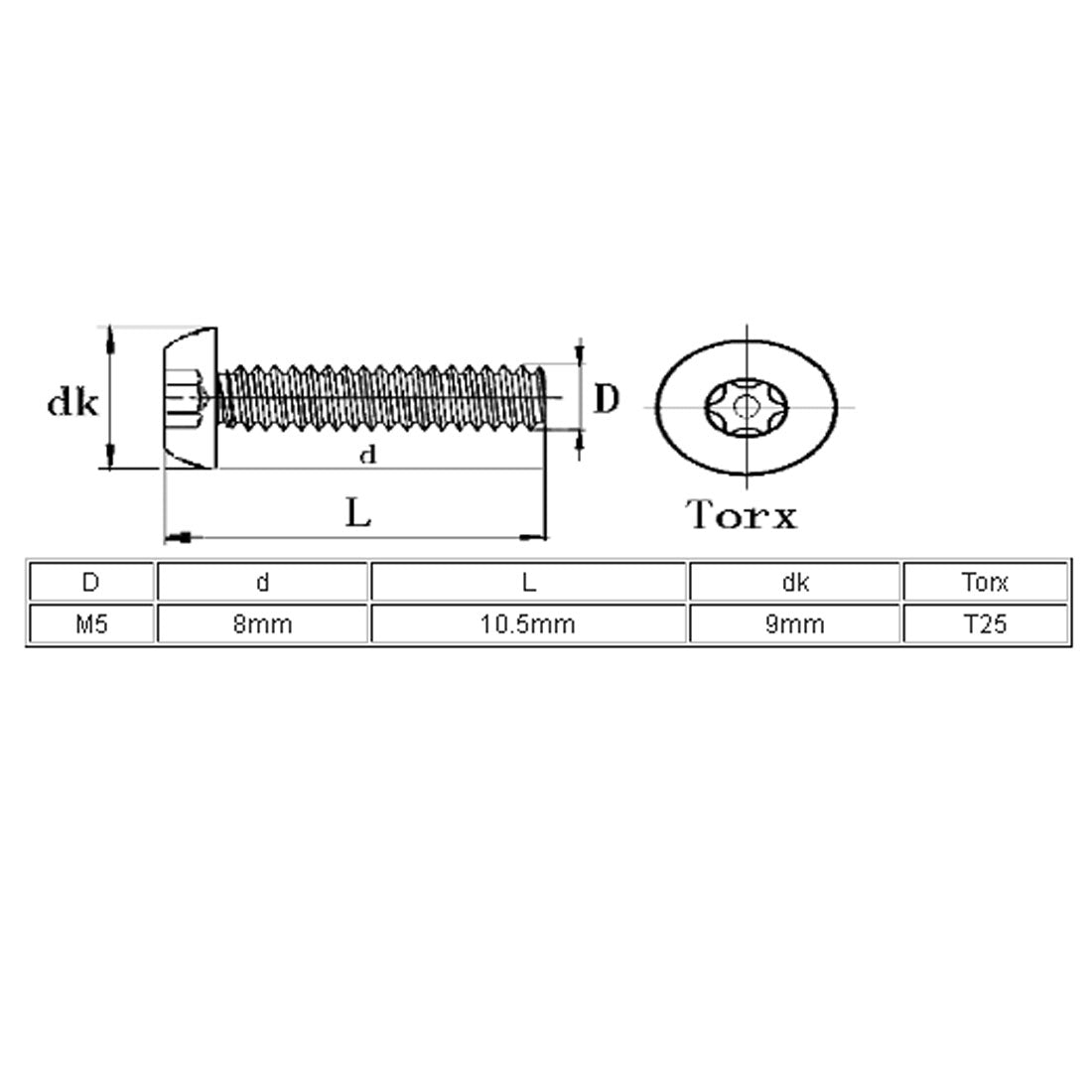 Harfington M5x8mm 304 Stainless Steel Button Head Torx Security Tamper Proof Screws 20pcs