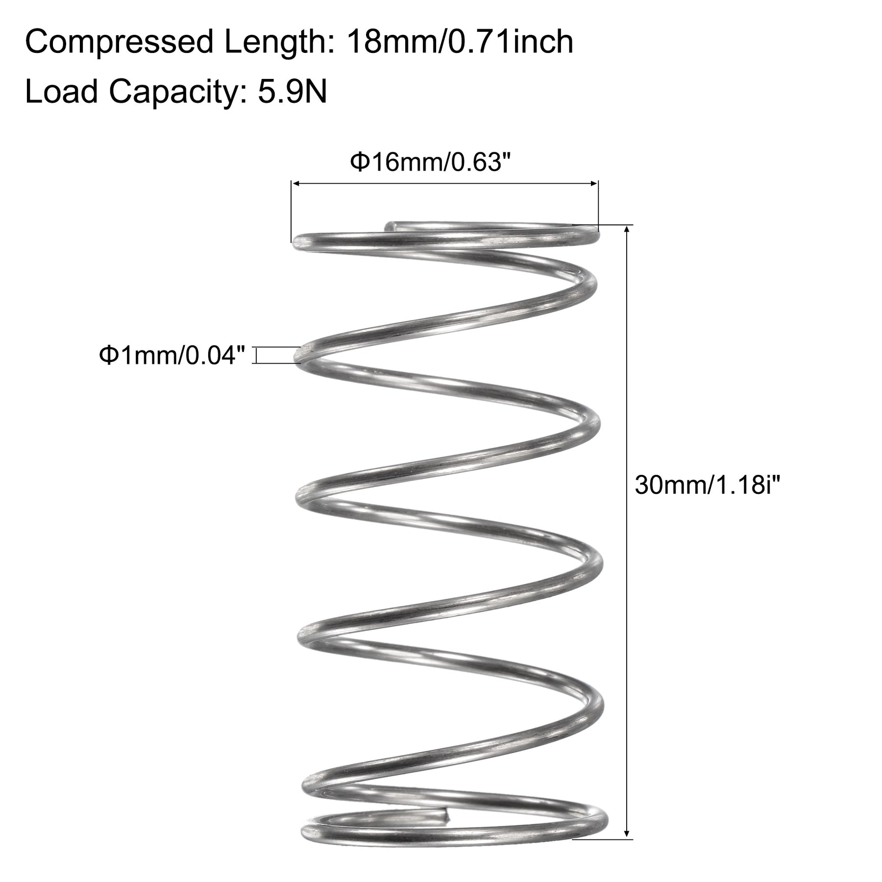 Uxcell 304 Stainless Steel Round Compression Spring Silver