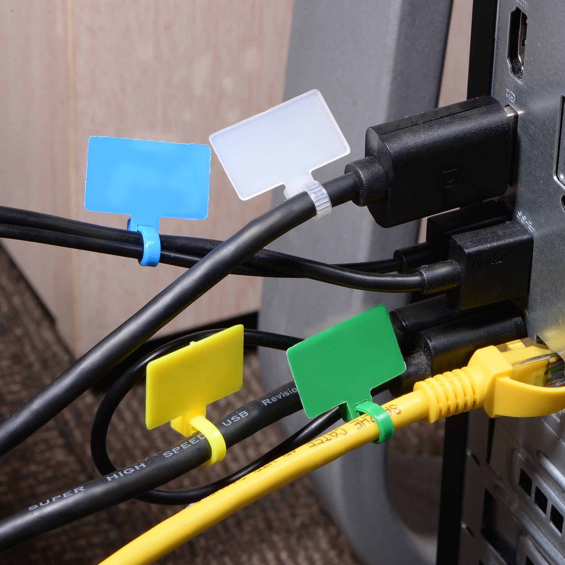 Description: 1.Both sides of the label is writable, which is easy to use and easy to mark(Recommended to use an oil-based pen) 2.When sorting wires, can be distinguished by different colors of the ties 3.The lock head is thickened and reinforced, so that the tie can be easily penetrated and clamped more tightly and firmly 4.Used in office, home, and so on. This tie can bind all kinds of wires and cables, such as network cable, computer cable, and so on. Moreover, these ties can also be used as identification labels for items, such as bags, luggage, etc.