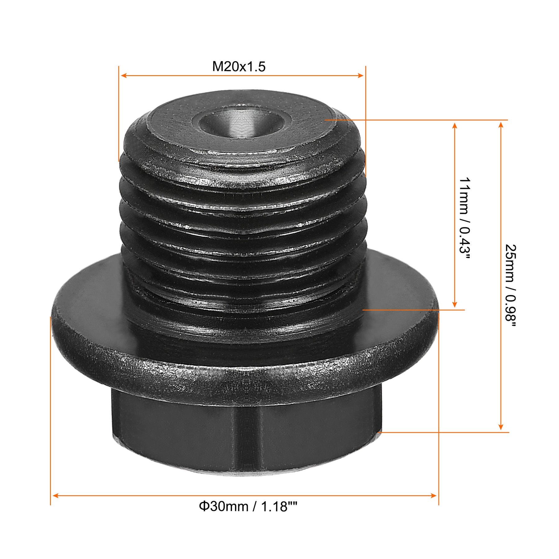 Specifications: Material: Carbon Steel Color: Black Male Thread Size: M18x1.5 Male Thread Length: 10mm / 0.39" Outer Hex Diameter: 19mm / 0.75" Total Size: 23mm x 27mm / 0.91" x 1.06"(H*Max.D)