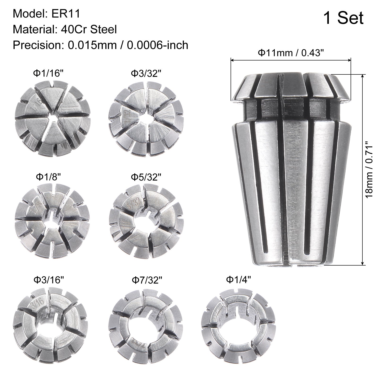 7pcs ER11 Spring Collet Set, 1/16" to 1/4" Chuck for CNC Machine Lathe Milling