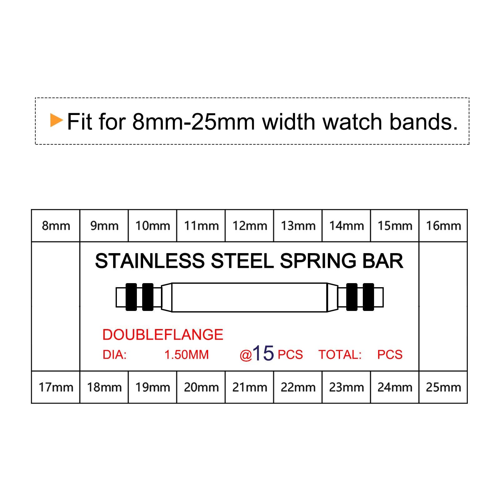 [ Size ] - These stainless steel spring bar pins fit for 8mm-25mm width watch bands.