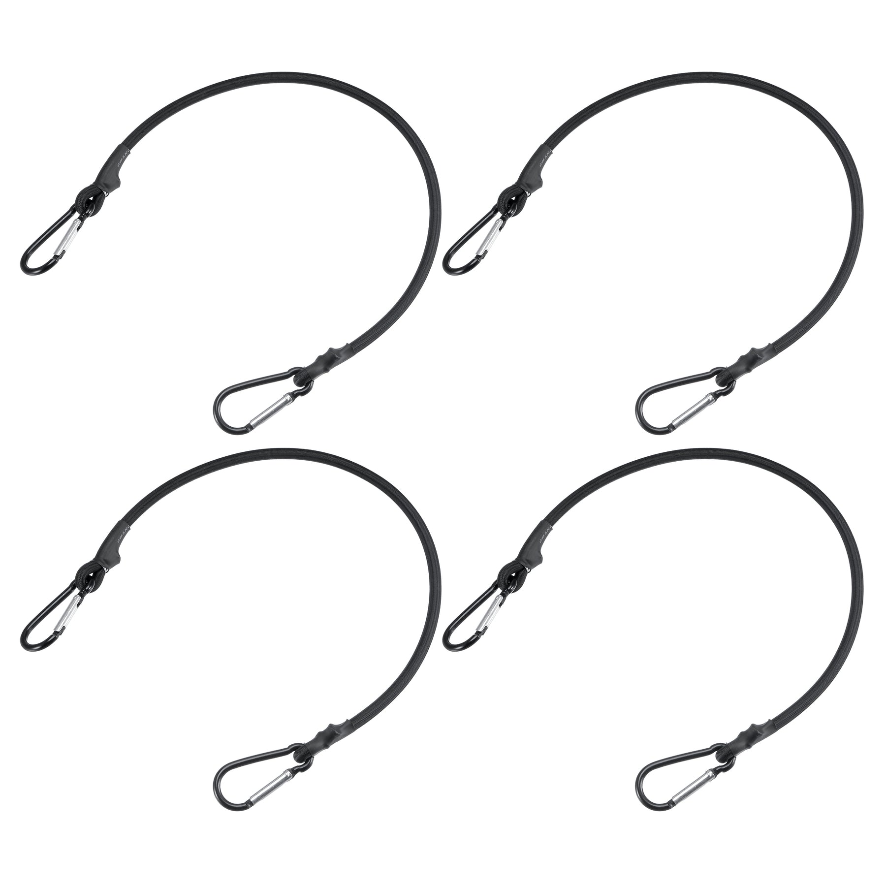 Elastic Cords with Hooks, 60cm/23.6 Inch Shock Rope 2 Snap Clips Tie Down for Camping Cargo Luggage Storage, Black Pack of 4