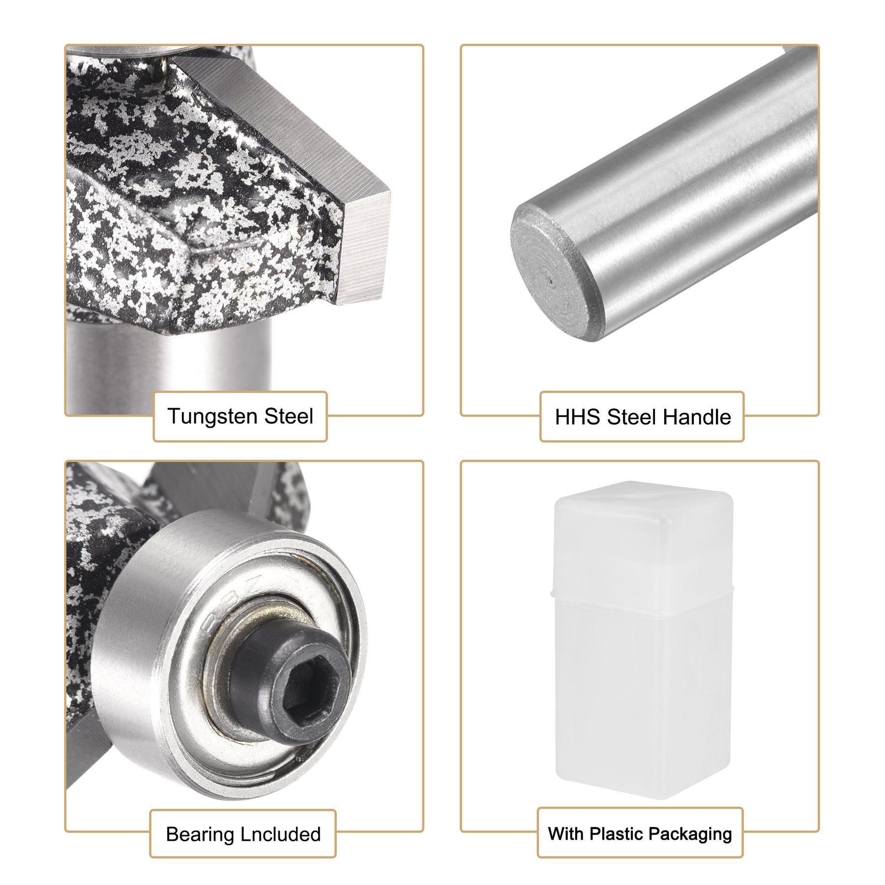 Used to cut 60 degree chamfers on the workpiece, the carbide (tungsten steel) cutter bit can make smooth and clean surface. The bearing guide can be replaced.