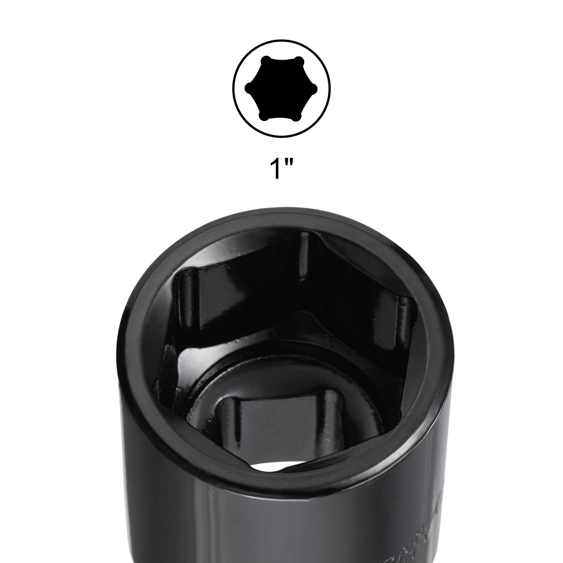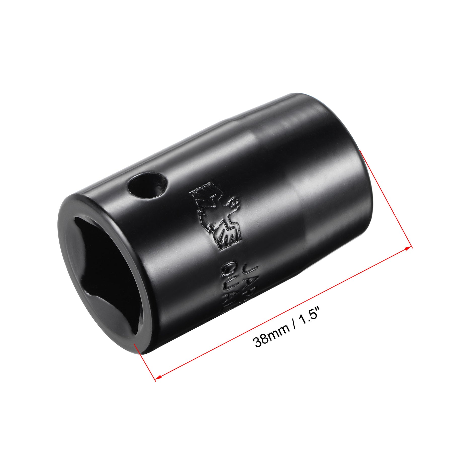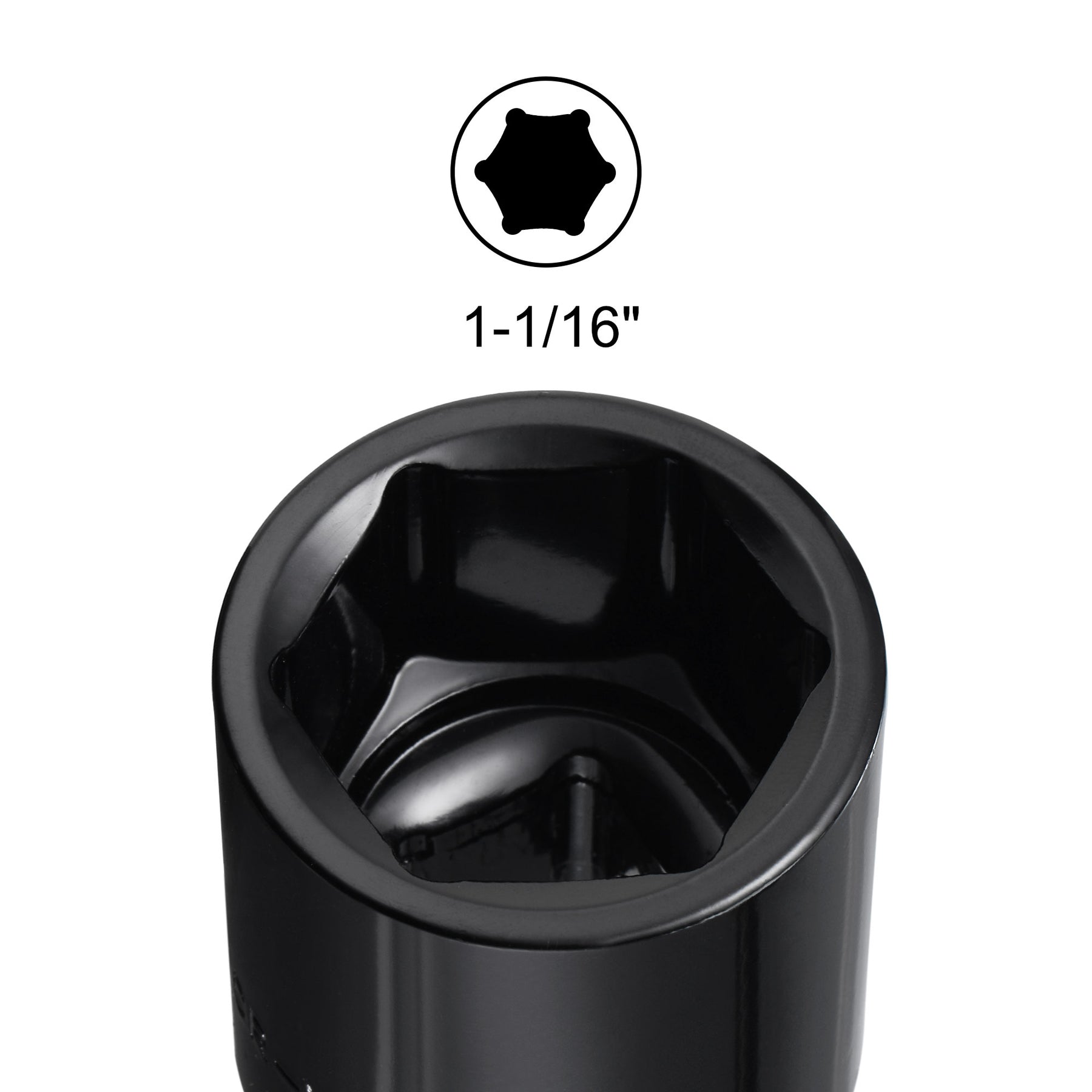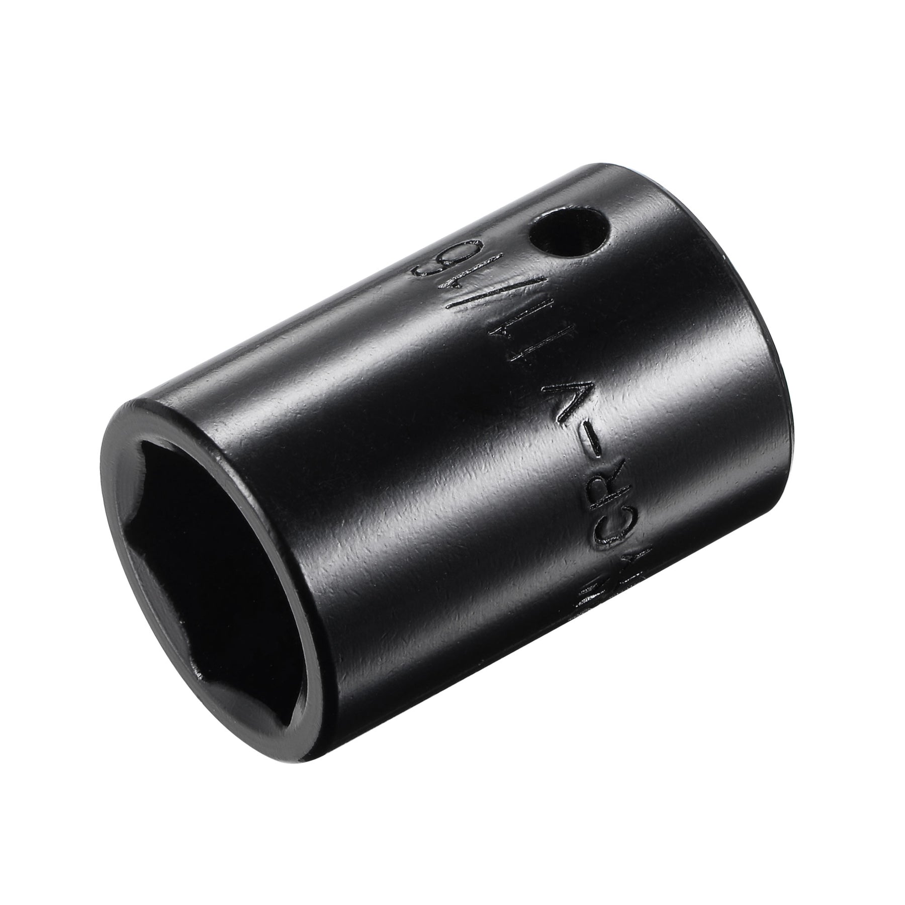 Size:5/16" Size:7/16" Size:9/16" Size:1/2" Size:11/16" Size:3/4" Size:5/8" Size:7/8" Size:15/16" Size:1-1/16" Size:1" Size:1-1/8" Size:1-1/4" * Made of chrome vanadium steel construction for strength and durability. * With black phosphate finish, to protect against rust and corrosion. * Has 6-point opening that snugly fits the hex shape of fastener heads, allowing it to apply maximum torque without slipping. * To prevent round-off under stress, it grips the flat sides of fastener heads rather than the corners. * The through-hole in the drive end locks onto the tang of impact wrenches or drivers so it won't fall off or stick on fastener heads. * Widely used in DIY hand-making, household maintenance, and most general repairs.