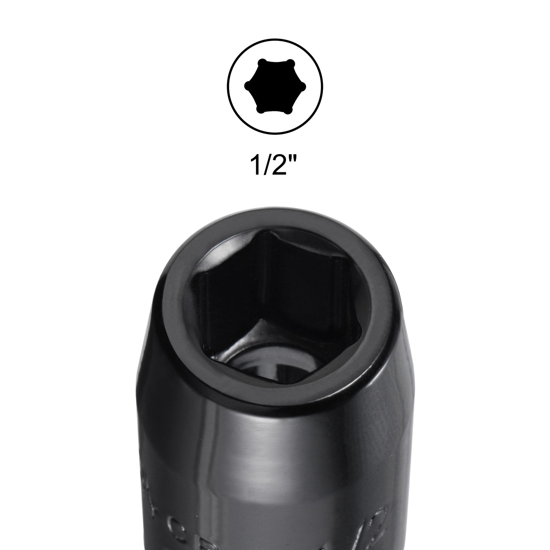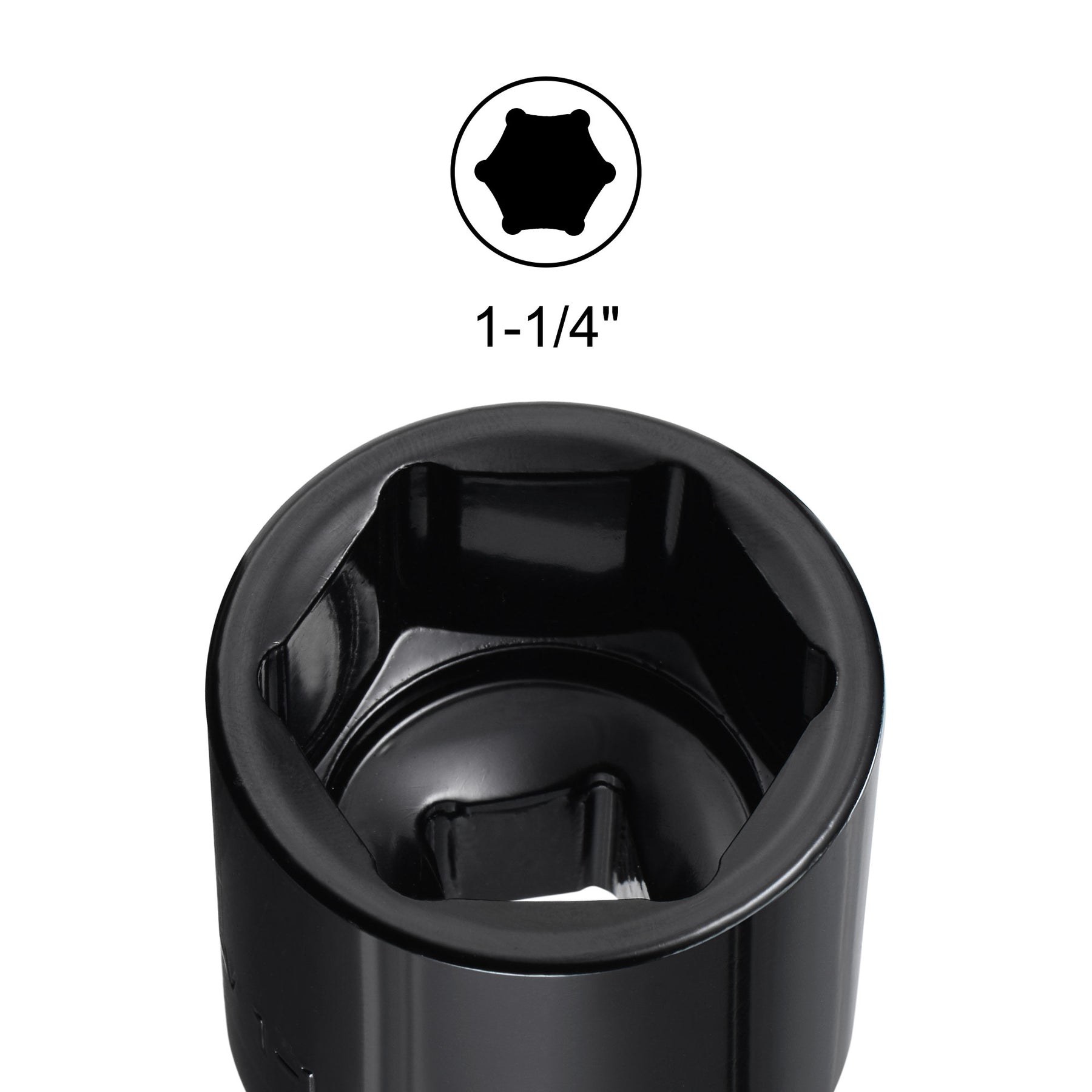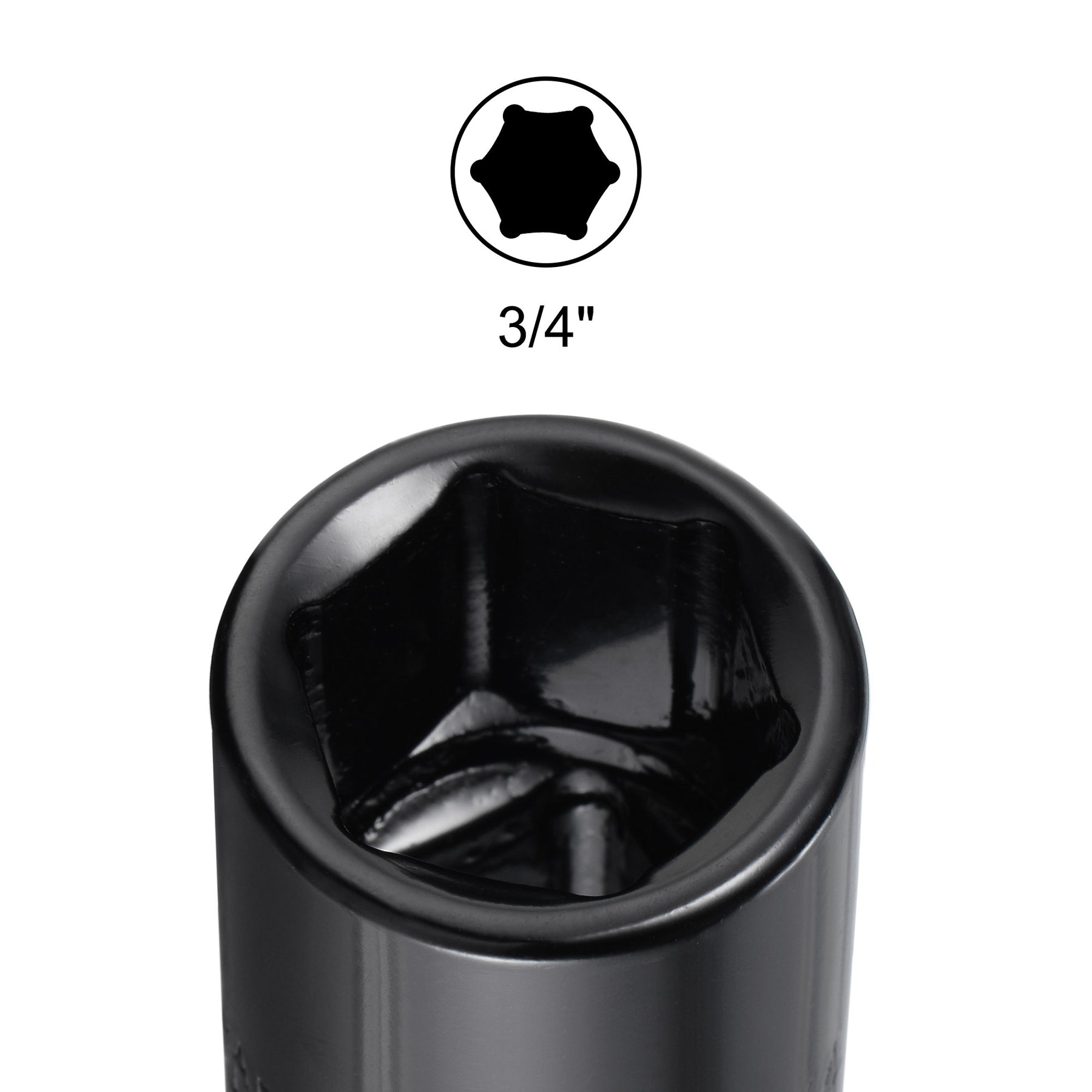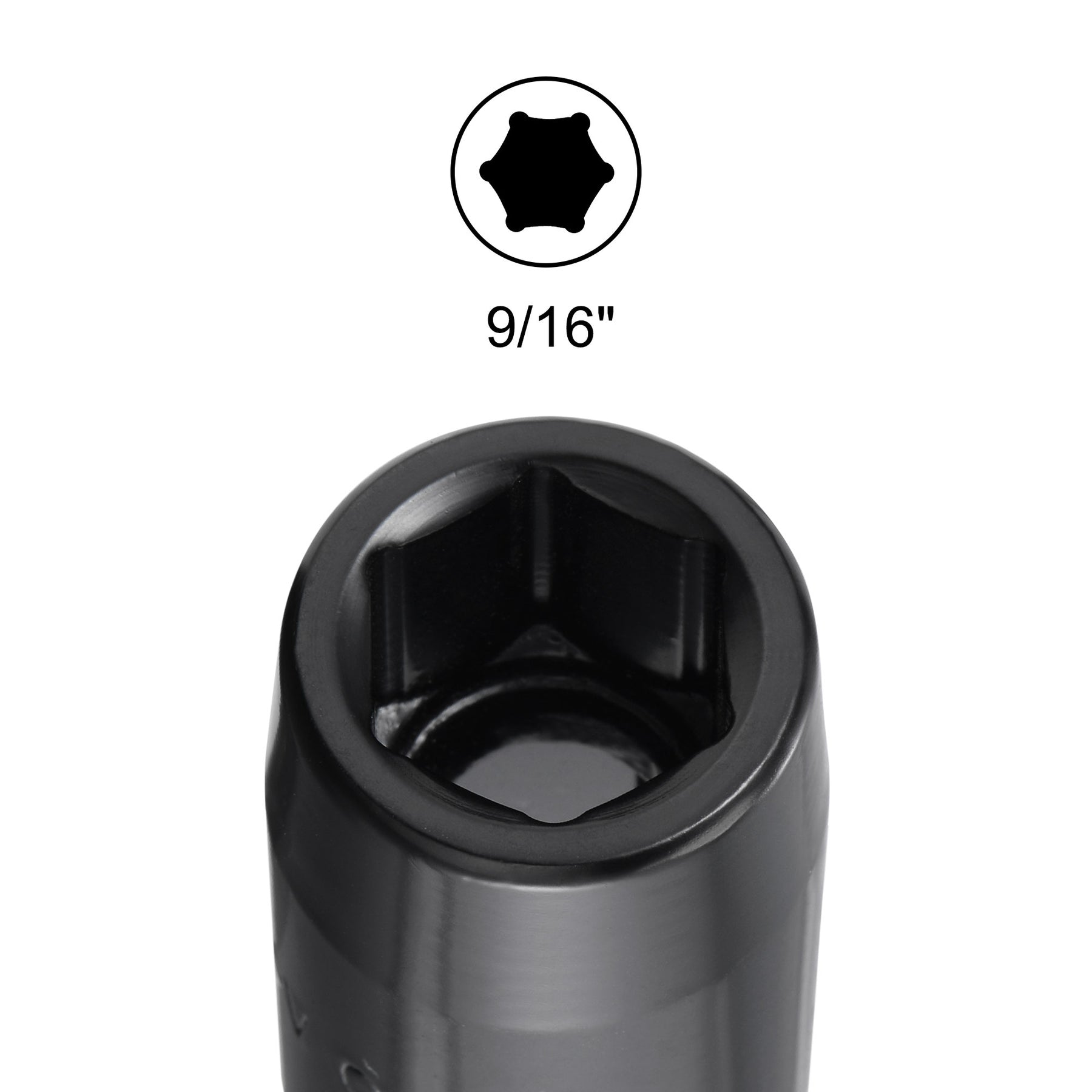 Size:5/16" Size:7/16" Size:9/16" Size:1/2" Size:11/16" Size:3/4" Size:5/8" Size:7/8" Size:15/16" Size:1-1/16" Size:1" Size:1-1/8" Size:1-1/4" * Made of chrome vanadium steel construction for strength and durability. * With black phosphate finish, to protect against rust and corrosion. * Has 6-point opening that snugly fits the hex shape of fastener heads, allowing it to apply maximum torque without slipping. * To prevent round-off under stress, it grips the flat sides of fastener heads rather than the corners. * The through-hole in the drive end locks onto the tang of impact wrenches or drivers so it won't fall off or stick on fastener heads. * Widely used in DIY hand-making, household maintenance, and most general repairs.