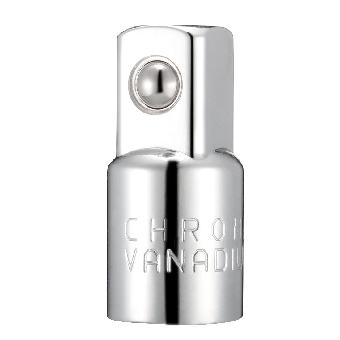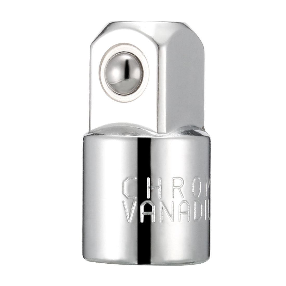Size:1/4" F to 3/8" M Size:3/8" F to 1/4" M Size:1/2" F to 3/8" M Size:3/8" F to 1/2" M * Made from heat treated chrome vanadium steel with chrome finish for extra durability and corrosion-resistant. * Chamfered ends and spring-loaded ball provides a secure hold onto sockets and prevents them from dropping. * Notches in socket ends lock onto ratchets and extensions. * Adapter give you the flexibility to get the job done easier and quicker. * Wide application in household maintenance, and most general repairs.