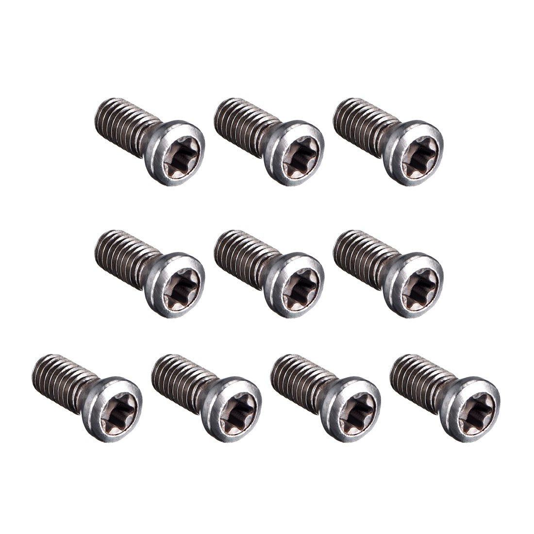 2. alloy steel material in silver tone, designed with torx type flat head.
