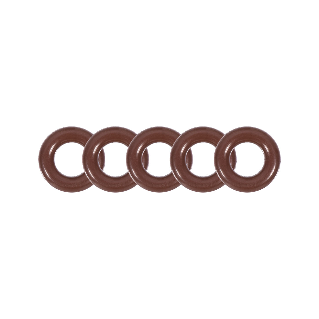 Specification: Color: Brown Material: Fluorine Rubber Hardness: 70A Durometer Working Pressure: 0.3 bar Outer Diameter: 10mm Inner Diameter: 5.2mm Cross-Section Diameter: 2.4mm Package Contents: 5 x Metric FKM O-Rings