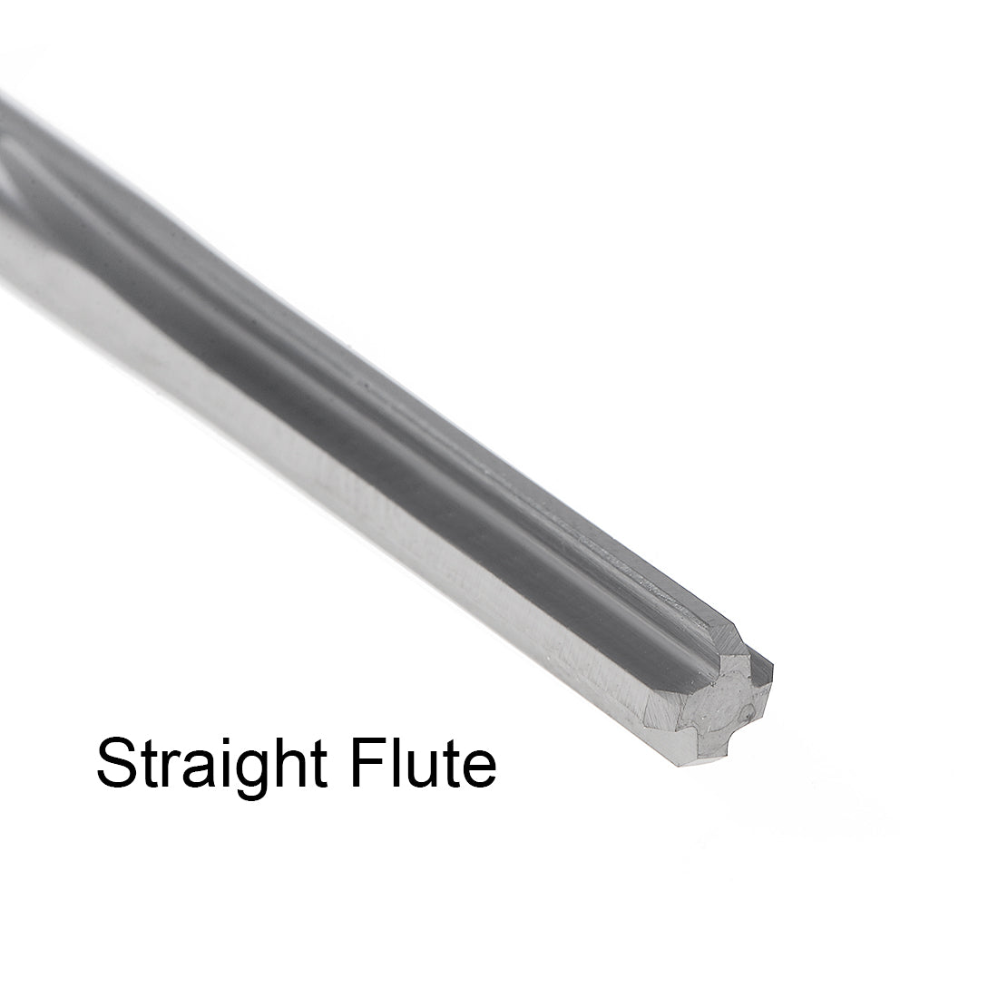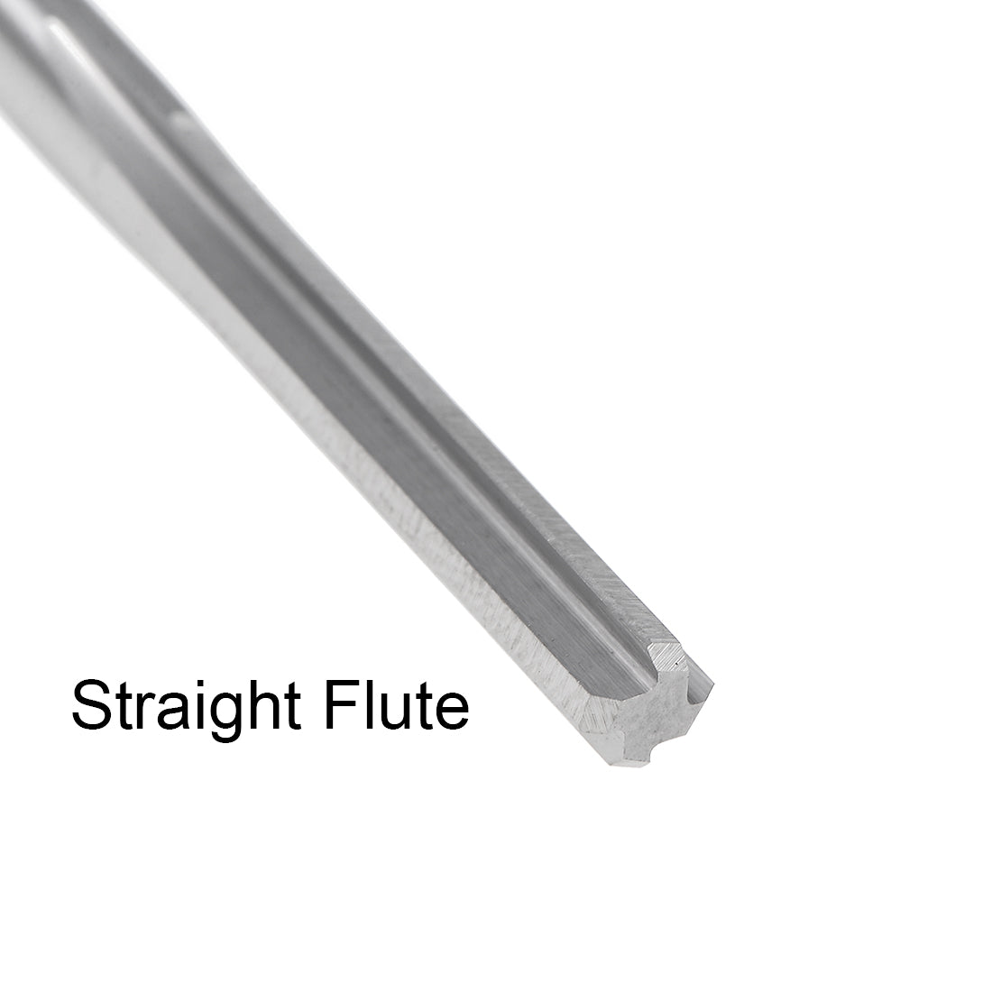 Description: 1. Carbide (Tungsten Steel) Tool: Good for most general purpose applications, offering hardness for wear resistance. 2. Round Shank: Allows use with a wide variety of toolholding systems. Should held in a good-quality toolholder in order to prevent the reamer from slipping in high torque applications. 3. Straight Flute Tool: Allows chips to collect in the flutes as they cut and is suited for most applications in shallow cuts. 4. Straight Flute Reamers: Good for use in through or blind holes without interruptions such as keyways. (through holes extend through the entire workpiece, while blind holes do not.) 5. Chucking Reamers: Designed for accurate reaming in most materials using all types of equipment including screw machines, turret lathes, drill presses and machining centers.