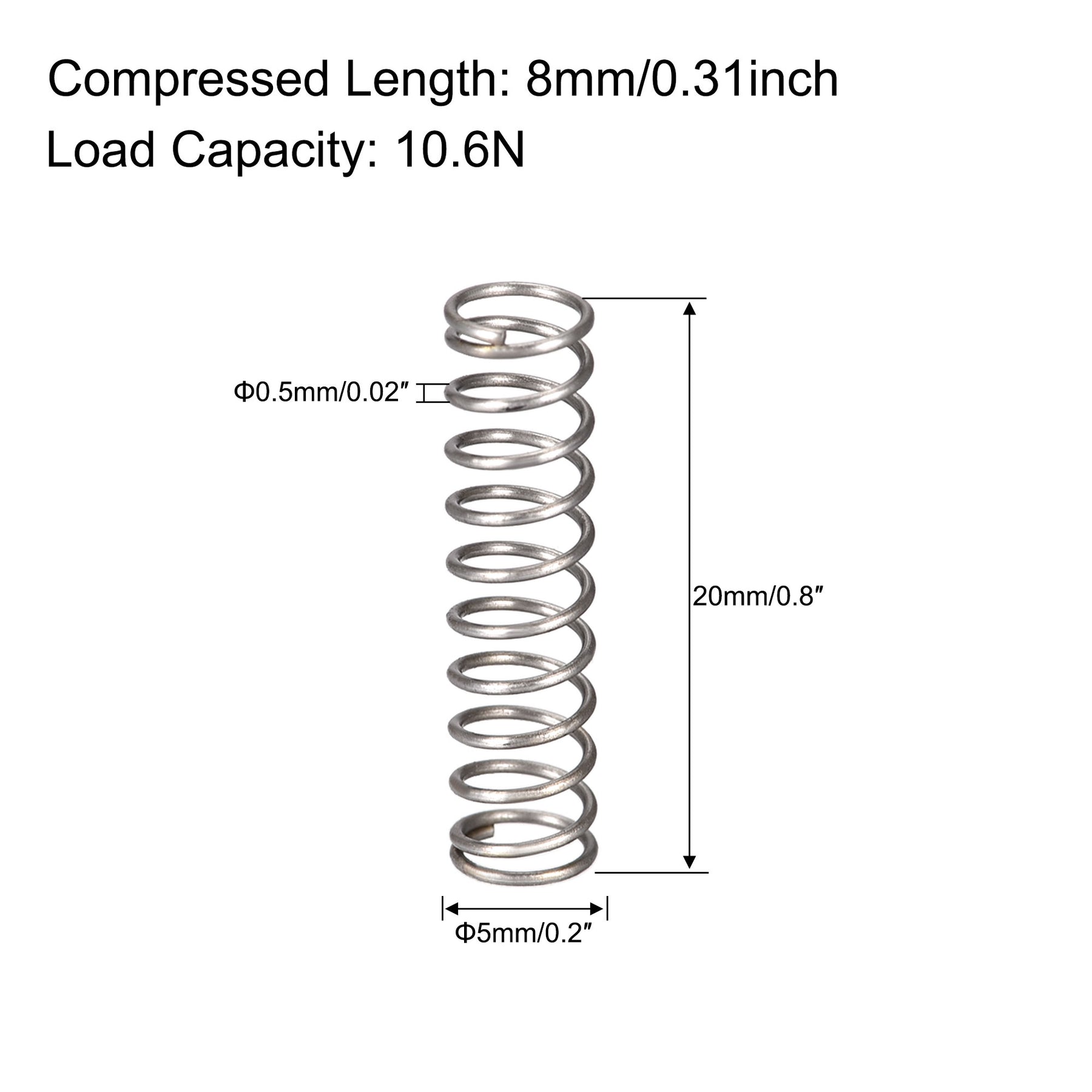 Harfington Uxcell Compressed Spring, Free Length,10.6N Load Capacity,Grey,10pcs