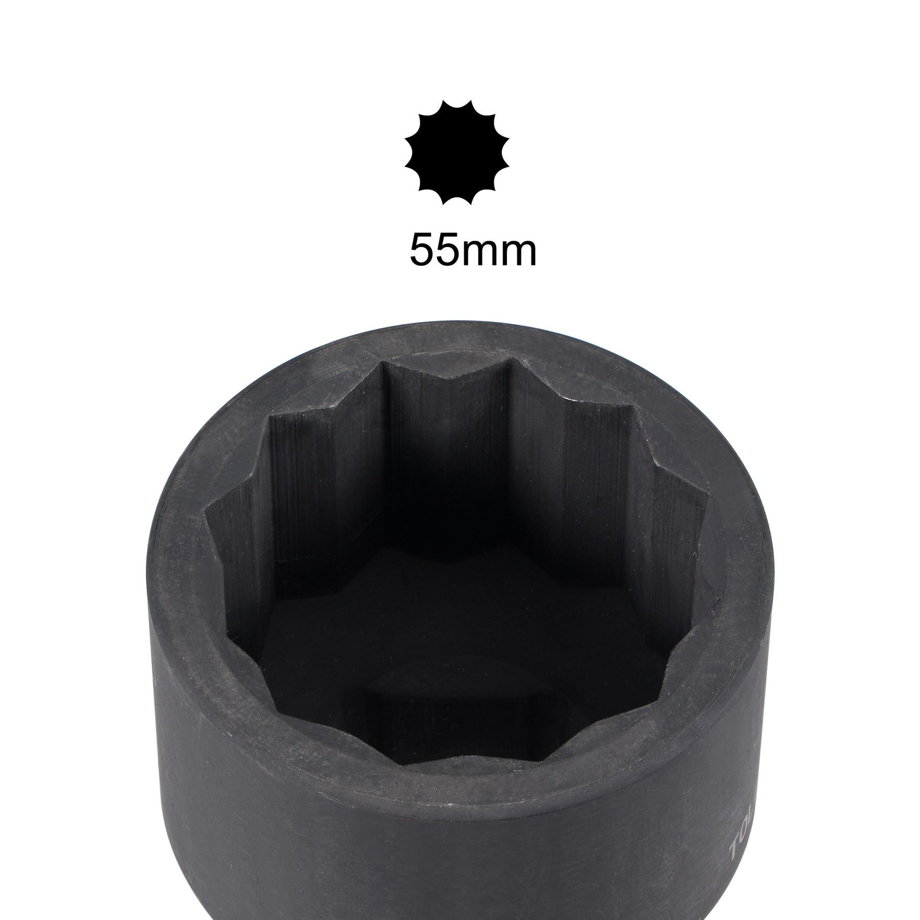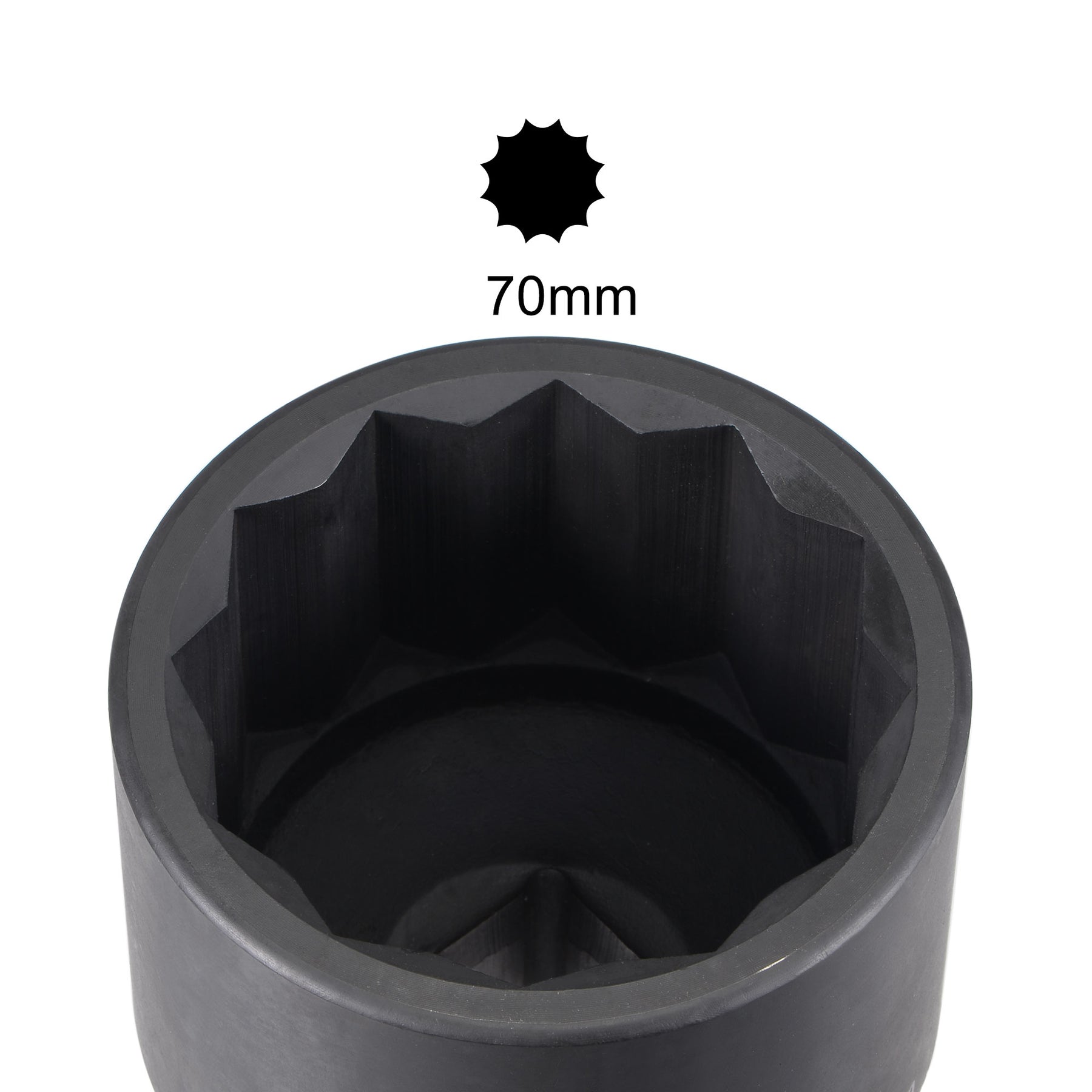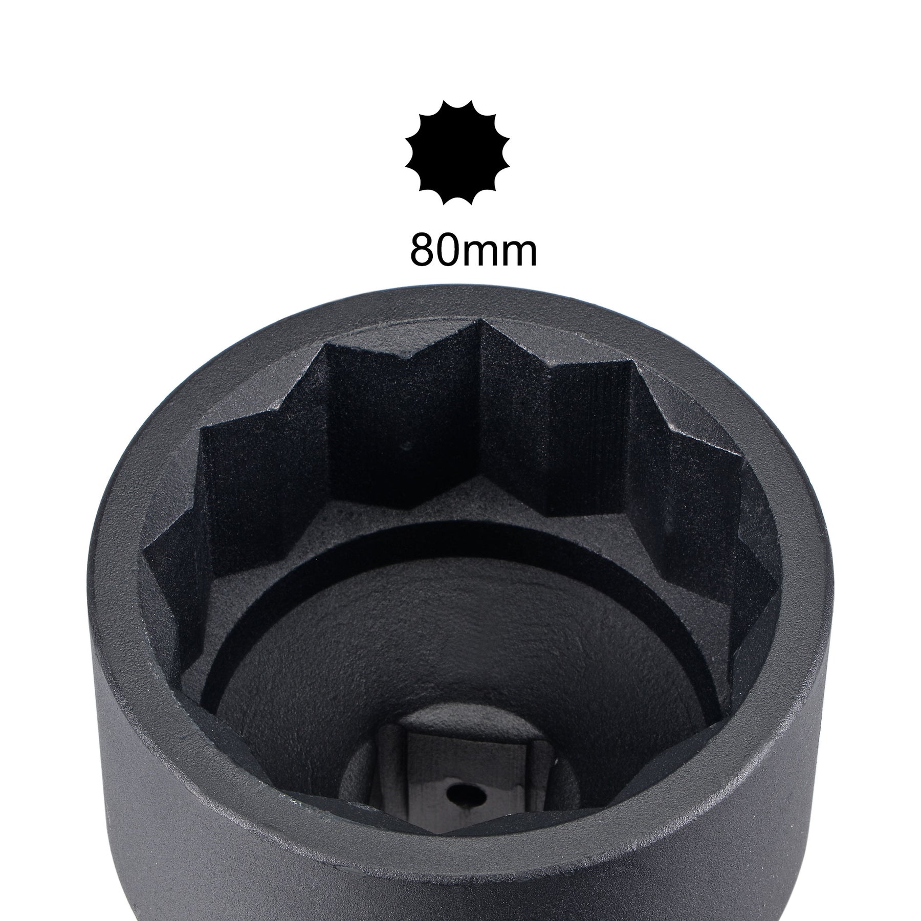 Size:55mm Size:60mm Size:65mm Size:65mm Size:68mm Size:80mm Size:70mm Size:70mm Size:85mm Size:75mm * Made of chrome-moly steel construction for strength and durability. * To prevent rust and corrosion, the black phosphate finish absorbs and retains oil, repelling moisture. * 12-point opening is suitable for double hex (12-sided), hex and square fasteners, can grab fasteners quickly at multiple angles. * To prevent round-off under stress, it grips the flat sides of fastener heads instead of the corners. * The through-hole at the drive end locks on the tang of drivers or impact wrenches, so it won't fall off or stick on the fastener head. * Widely used in DIY hand-making, household maintenance, and most general repairs.