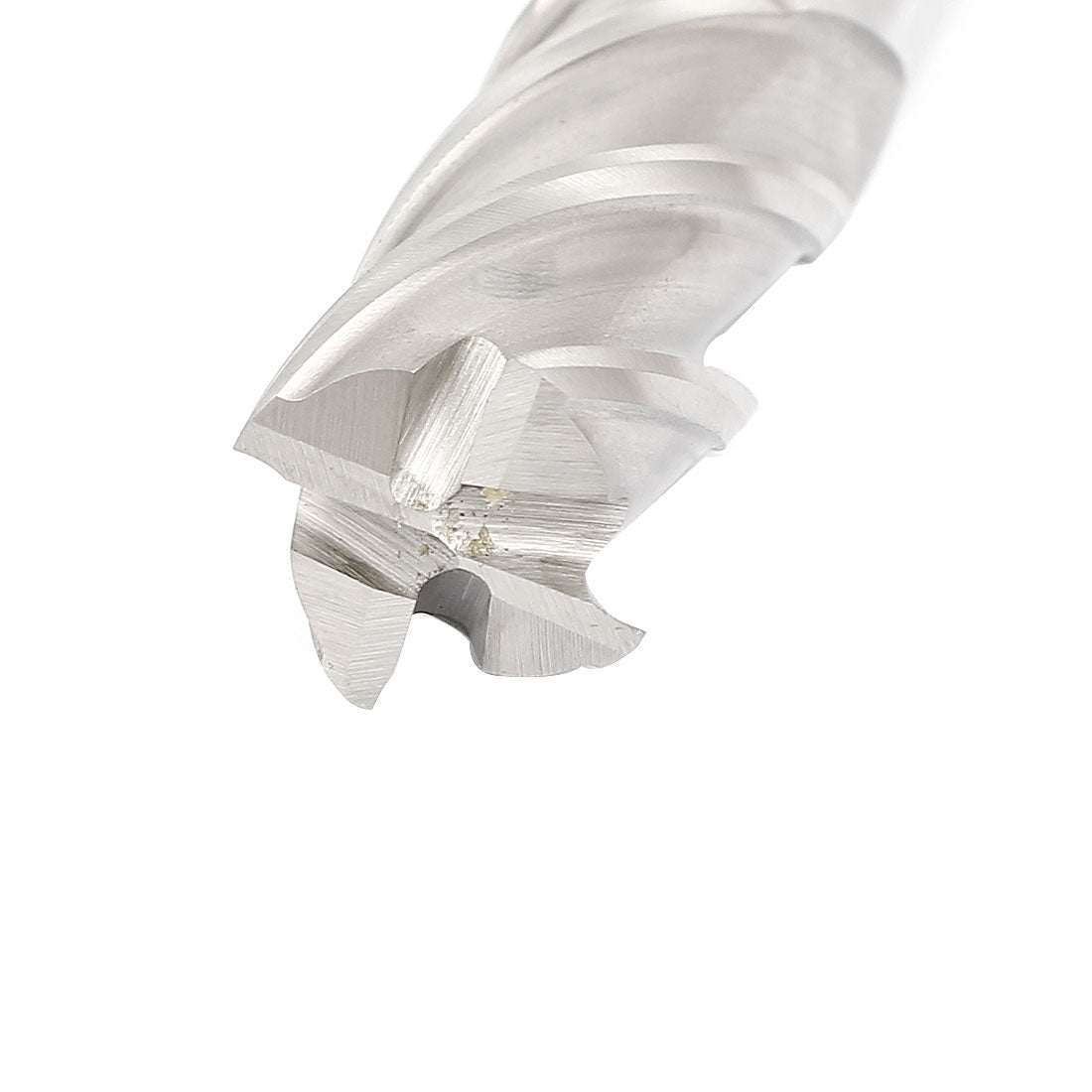 4 flutes, coarse teeth, straight shank, deep helical groove.