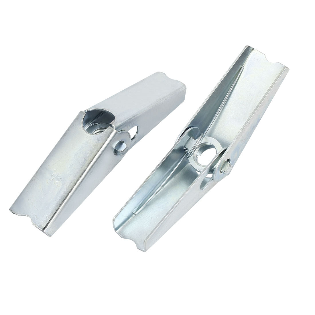 Spring loaded toggle wing nut. All metal light duty fixtures, more durable. The wings of the toggle spread the load over a wider area with a self expanding mechanism, fixed more firmly. It can be installed on the plasterboard wall to hold shelf, curtain rod, hallstand, lamps. Screws are not included here! Installed Method: