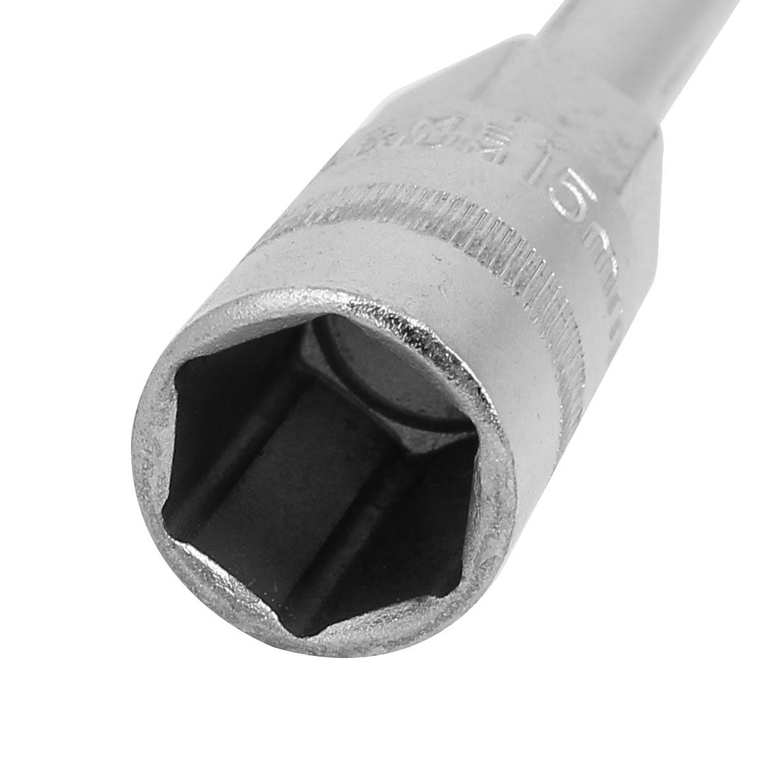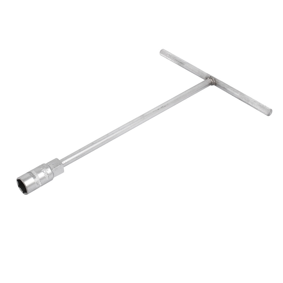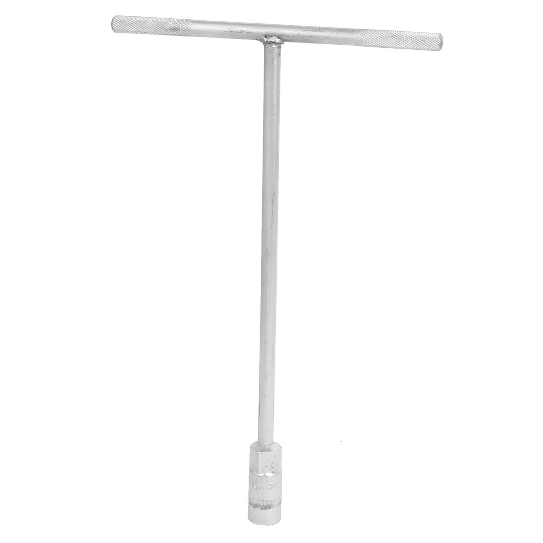 Chrome Vanadium material in silver tone, knurling handle and comfortable hand grip. T-shape designed hex socket allows access to nuts fitted onto protruding threads. Extra long arm can save strength and time for pleasant operation.