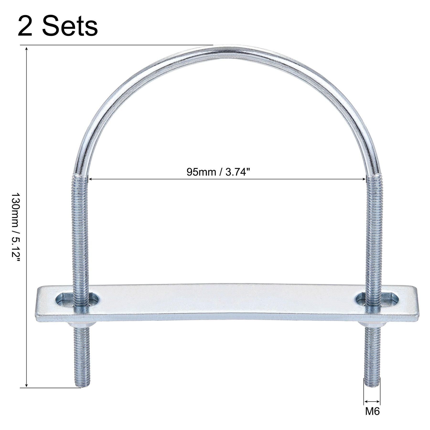 Specification: Product Name: U-Bolt Material: Steel Surface Treatment: Galvanized Main Color: Silver Tone Thread Dia.: M6 Fit Rod Size: 95mm / 3.74" Rod Diameter: 5.2mm / 0.2" Total Length: 130mm / 5.12" Hex Nut Size: 10 x 5mm / 0.39" x 0.2"(Hex Width*H) Frame Plate Size: 130 x 25 x 3mm/ 5.12" x 0.98" x 0.12"(L*W*T) Round Washers Size: 22 x 6 x 1.5mm / 0.87" x 0.24" x 0.06"(OD*ID*T)