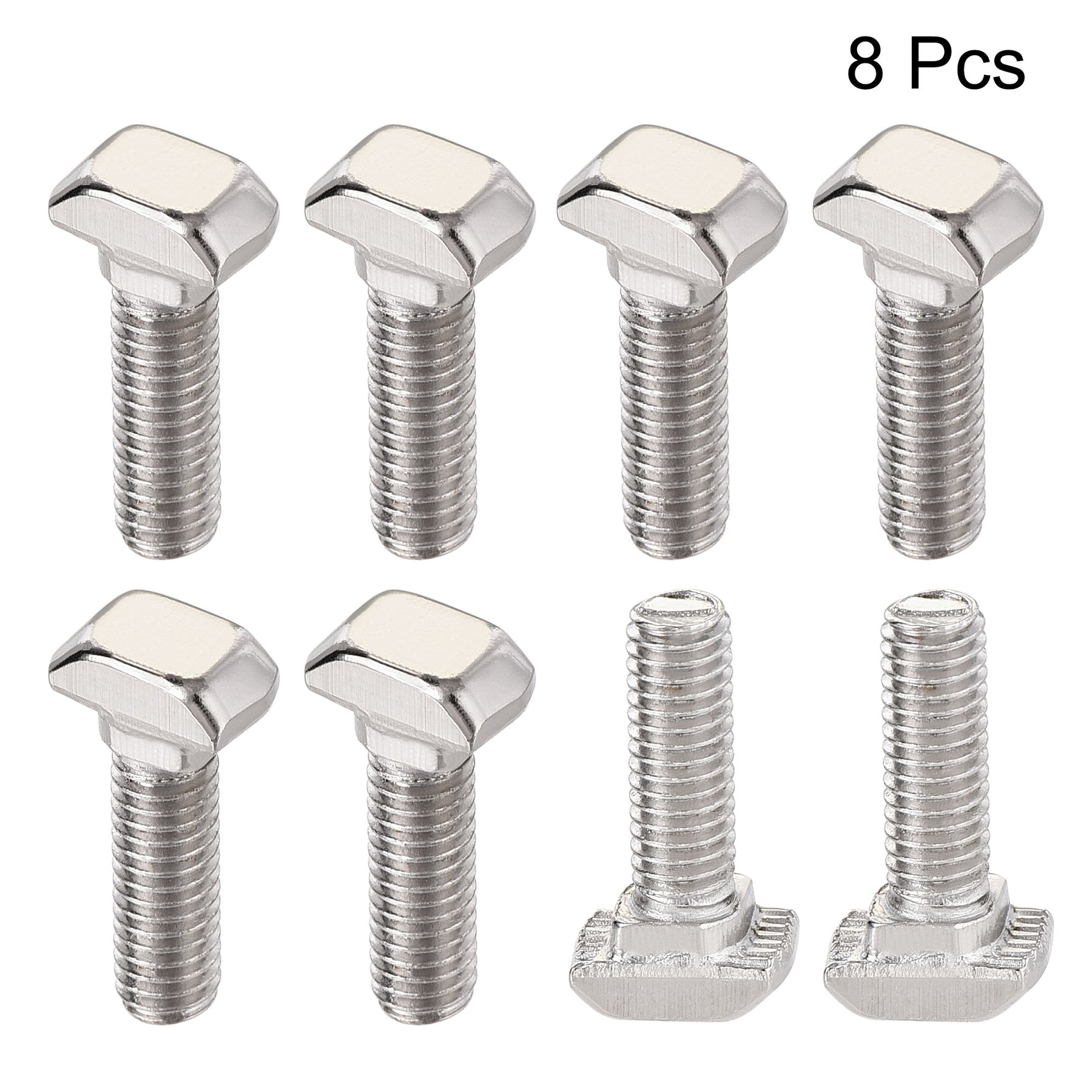 Description: 1.Carbon steel T screw bolt screws nuts surface chrome finish, quenching and tempering heat treatment, not easy corrosion, and high-hardness. 2.Used widely for aluminum alloy, rack assembly and clamping lock, used with T-nuts, good fastening effect. 3.When purchasing, please confirm the size of your aluminum profile or T-groove to ensure that it matches the size of our T-bolt.