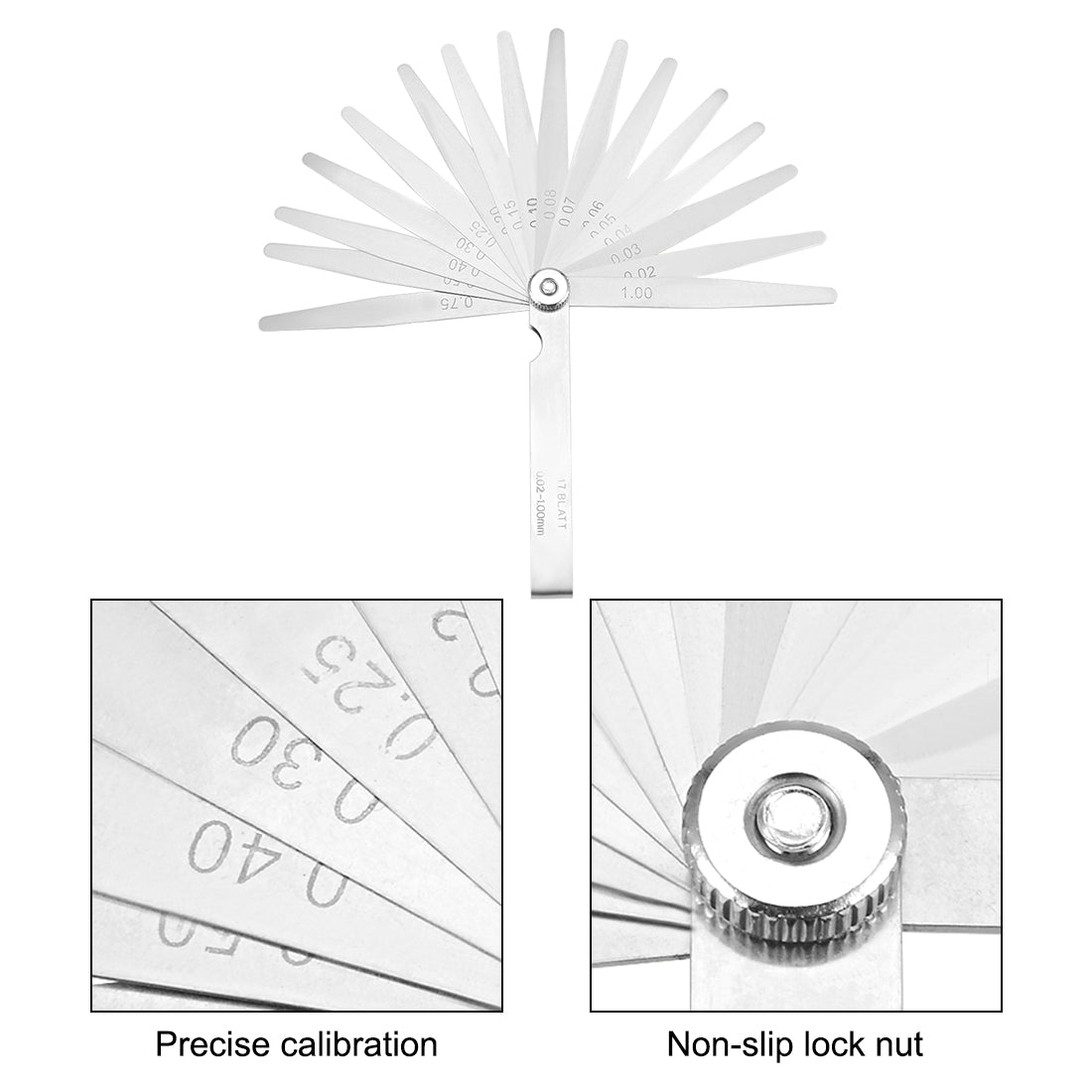 Suitable for designers, engineers, mechanics to measure the thickness of tappet clearances, spark plugs gaps, bearing clearances, piston ring gaps and other.