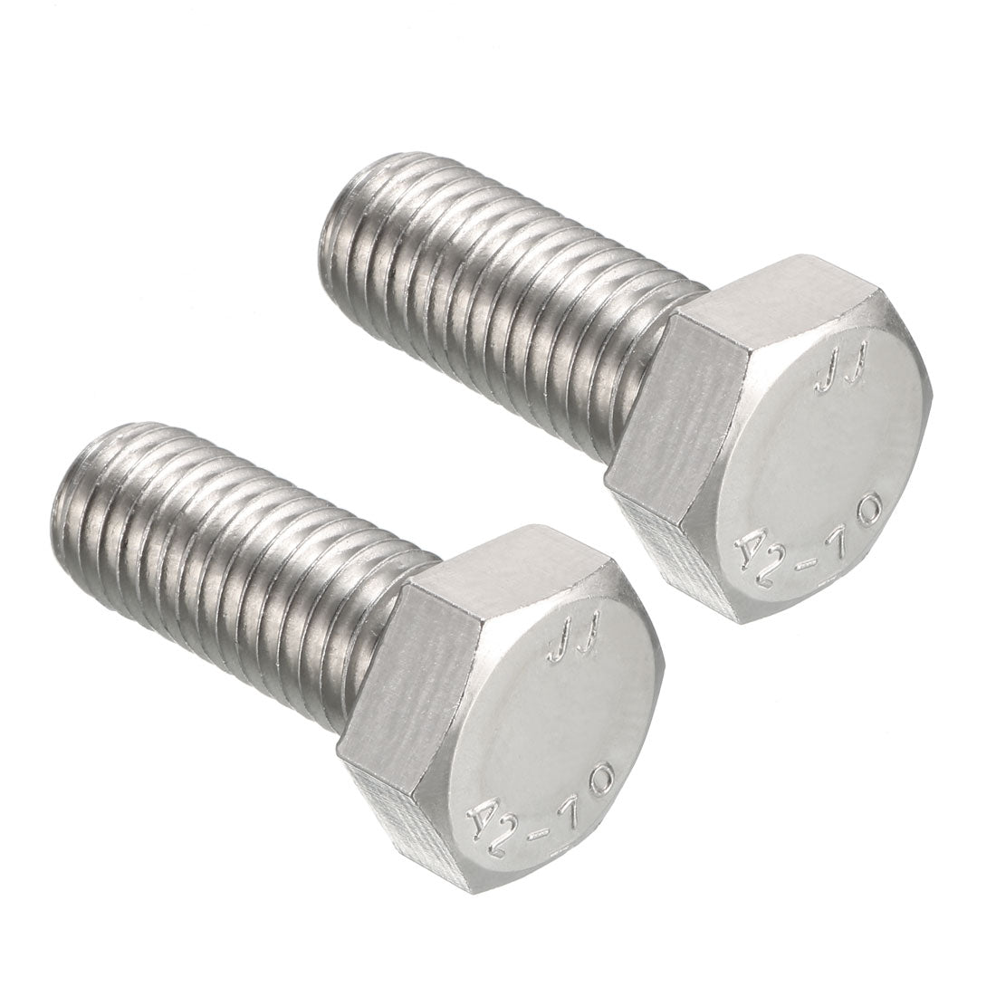 Specification: Product Name: Hex Bolts Material: 304 Stainless Steel Color: Silver Tone Dimension: M12 x 30mm Rod Length: 30mm / 1.18" Pitch: 1.75mm/ 0.07" Hex Width: 18mm/ 0.71" Hex Thickness: 7.5mm/ 0.3" Tightening Torque: 78-104 · m Standard: ISO4017/DIN933 Package Content: 2 x Hex Bolts