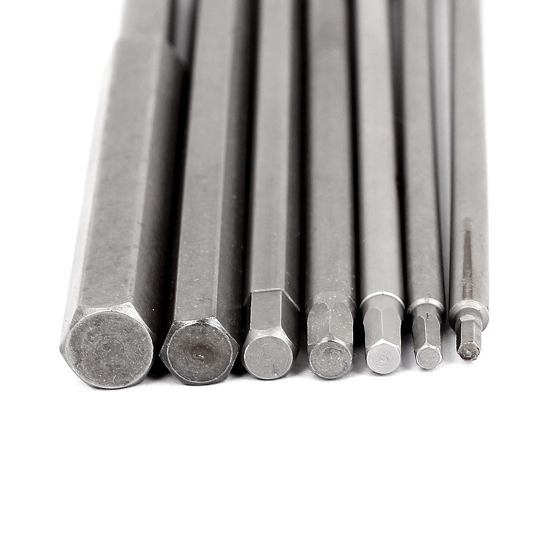 The screwdriver bit is suitable for electric hex screwdriver. It is useful to operate electronic device, perfect for electrician, mechanic and repair work. This set contents:1pcs x 4.0mmxH2.5(shaft diameter*bit size), 1pcs x 4.5mmxH3(shaft diameter*bit size), 1pcs x 5.5mmxH4(shaft diameter*bit size), 1pcs x 6mmxH5(shaft diameter*bit size), 1pcs x 6mmxH6(hex shaft diameter*bit size), 1pcs x 8mmxH8(hex shaft width*bit size), 1pcs x 10mmxH10(hex shaft width*bit size)