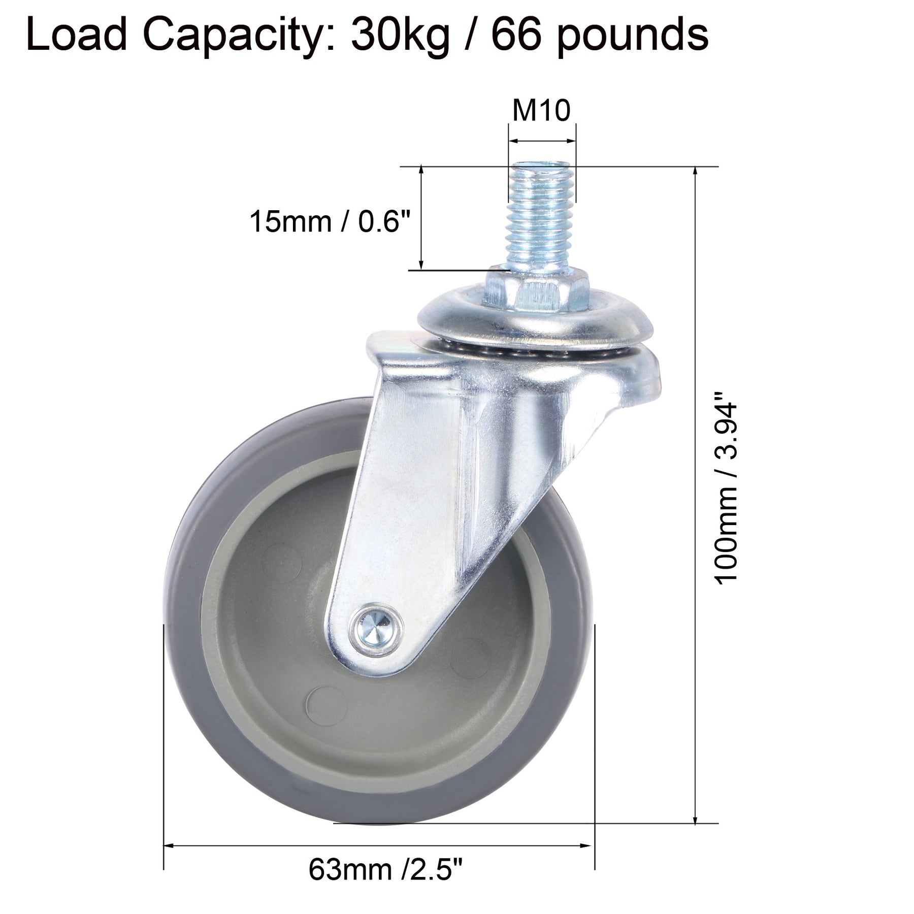 Size:2" Features: The caster wheel can work on various surfaces like tile, concrete, and wood. TPE wheels allow them to roll smoothly with no marking and the full set of ball bearings feature a more flexible rotation The caster wheel suits to use in a kitchen, bar, restaurant or any other commercial environment. A table or basket with wheels can help you move things easily and save effort