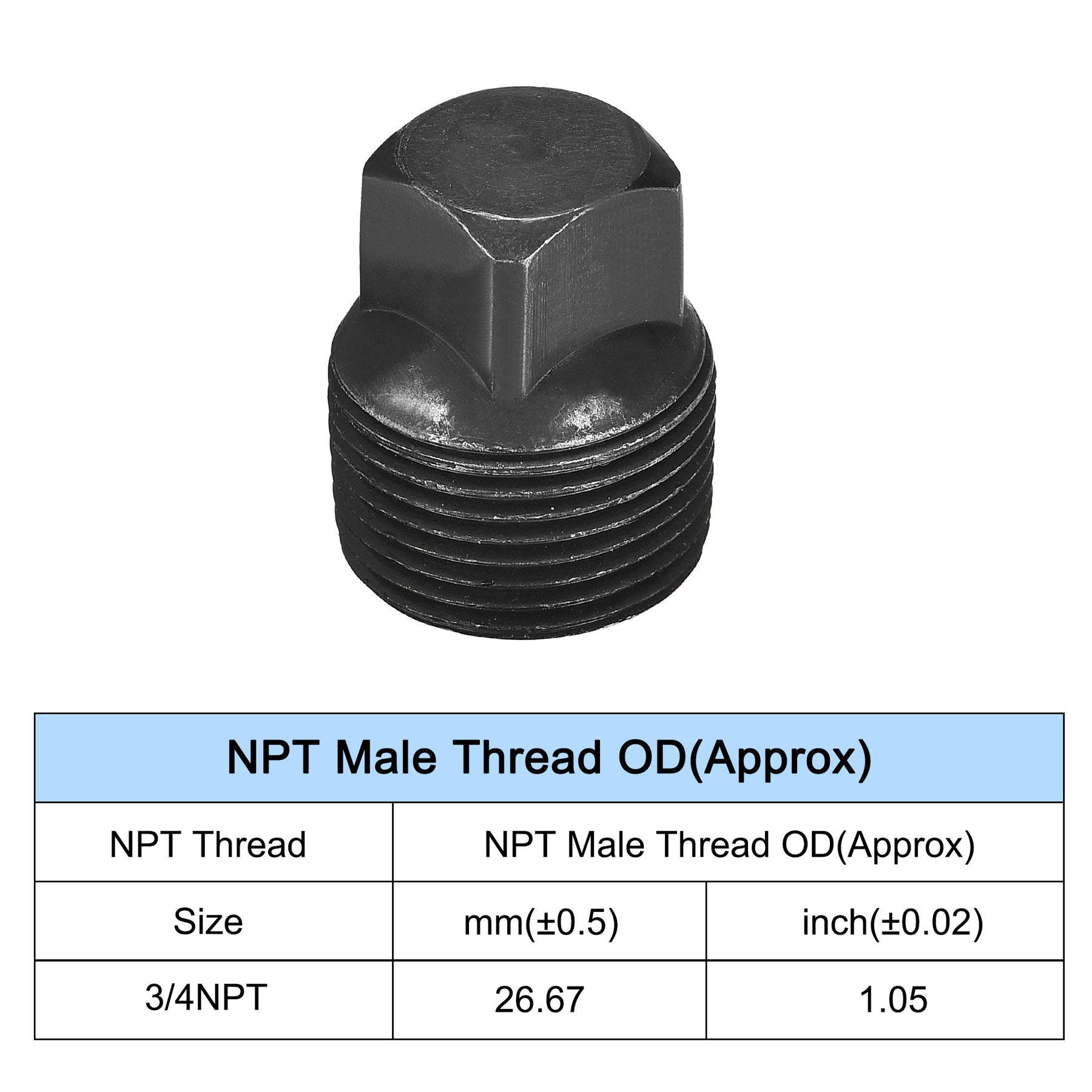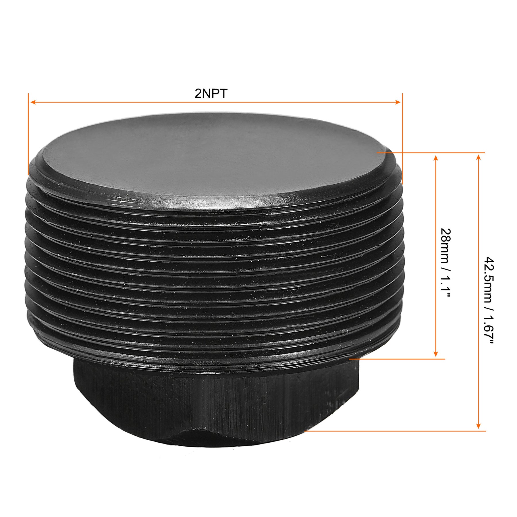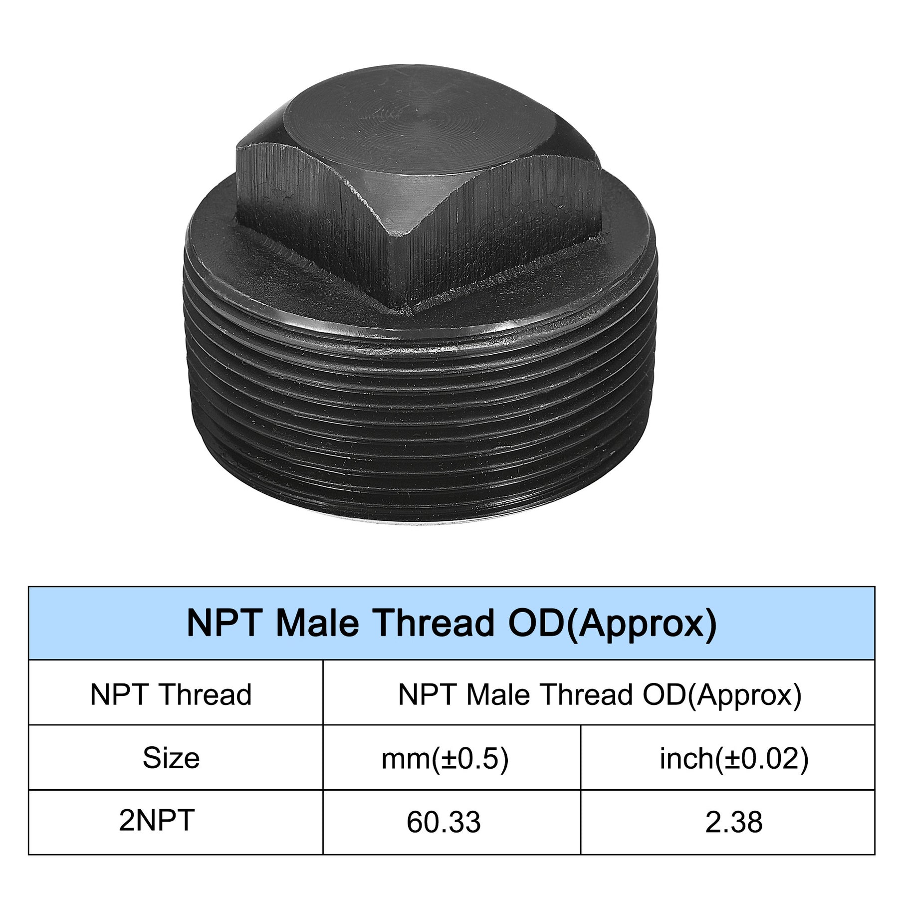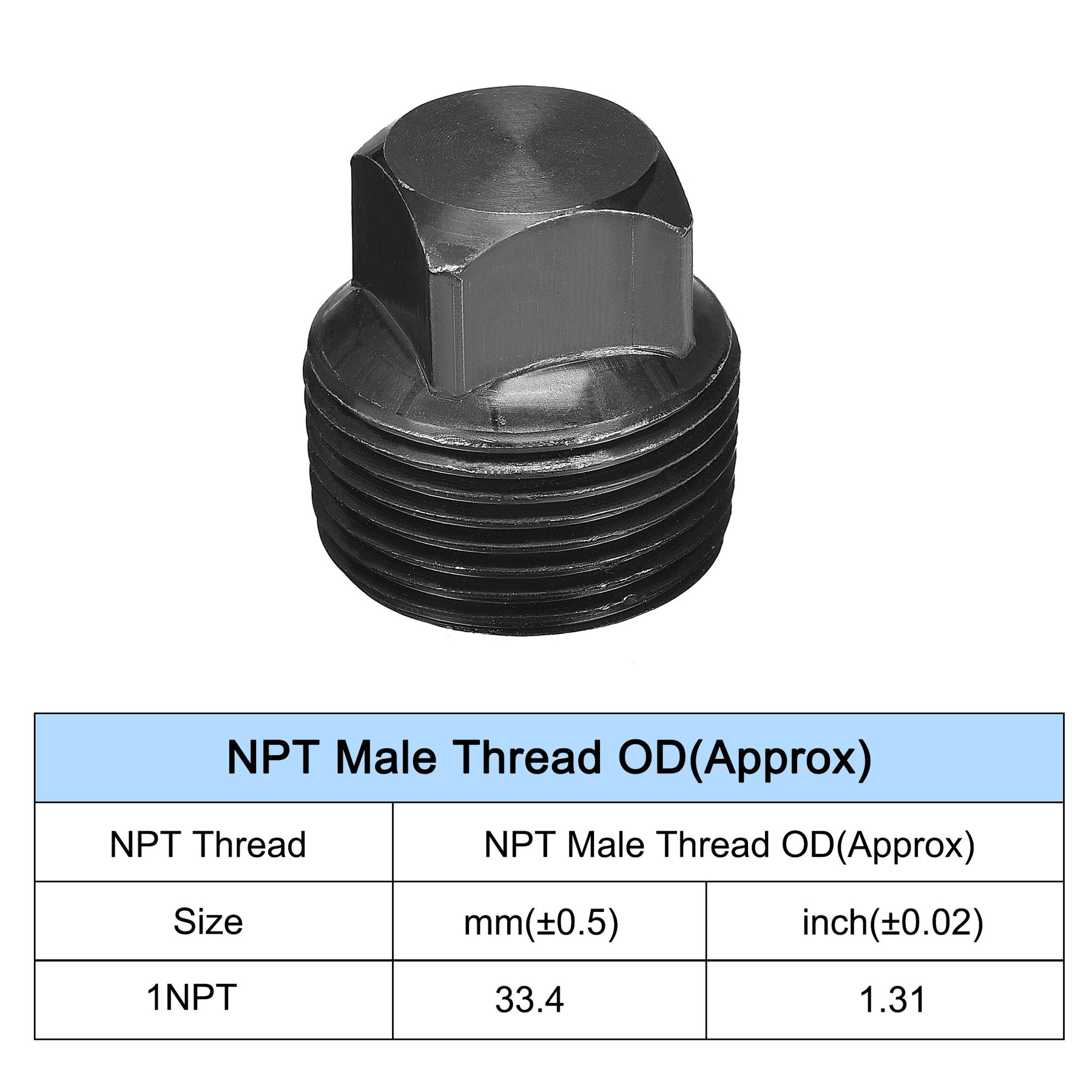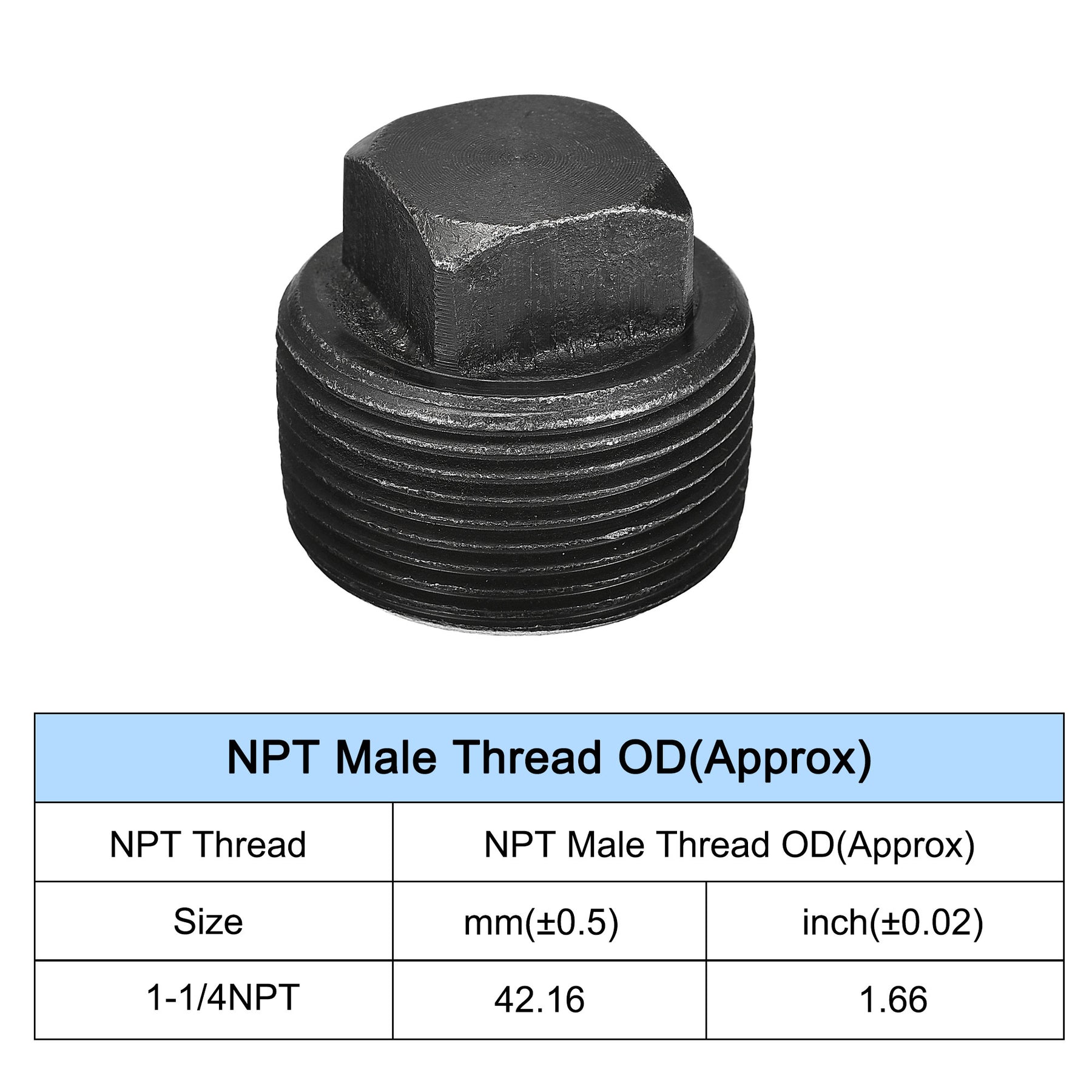 Size:1-1/2NPT Features: Made of carbon steel, high strength and long durability. Precision threads ensure the firmness and sealing of the connection. Outer square head for increased leverage with a wrench during installation and disassembly. Used for closing and terminating the end of the pipe in industry, factory, outdoor garden.