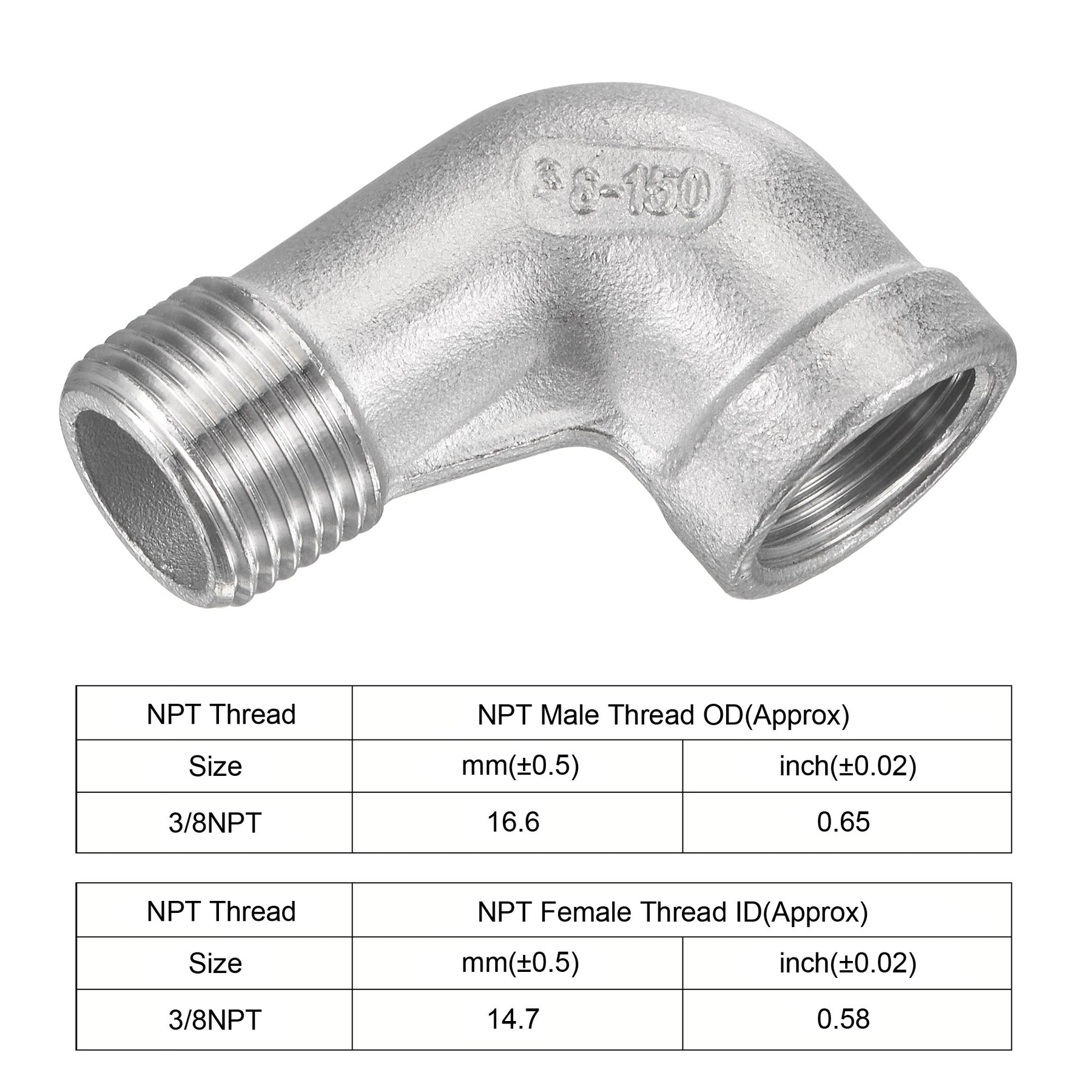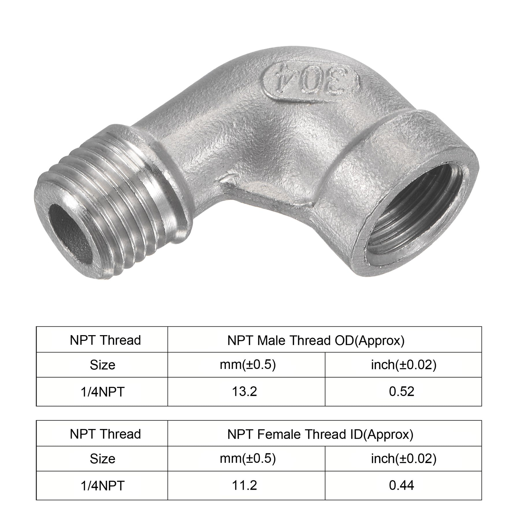 Features: Elbow coupling pipe connector with 2 openings for connecting 2 pipes. 304 stainless steel material for rust resistance, corrosion resistance, scratch resistance. The 90 degree L-shape tube fitting is commonly used to connect pipes as air, water, fuel in a quick and simple way. Note: Please confirm the correct size before ordering. Used with sealing tape (not included) for better sealing.