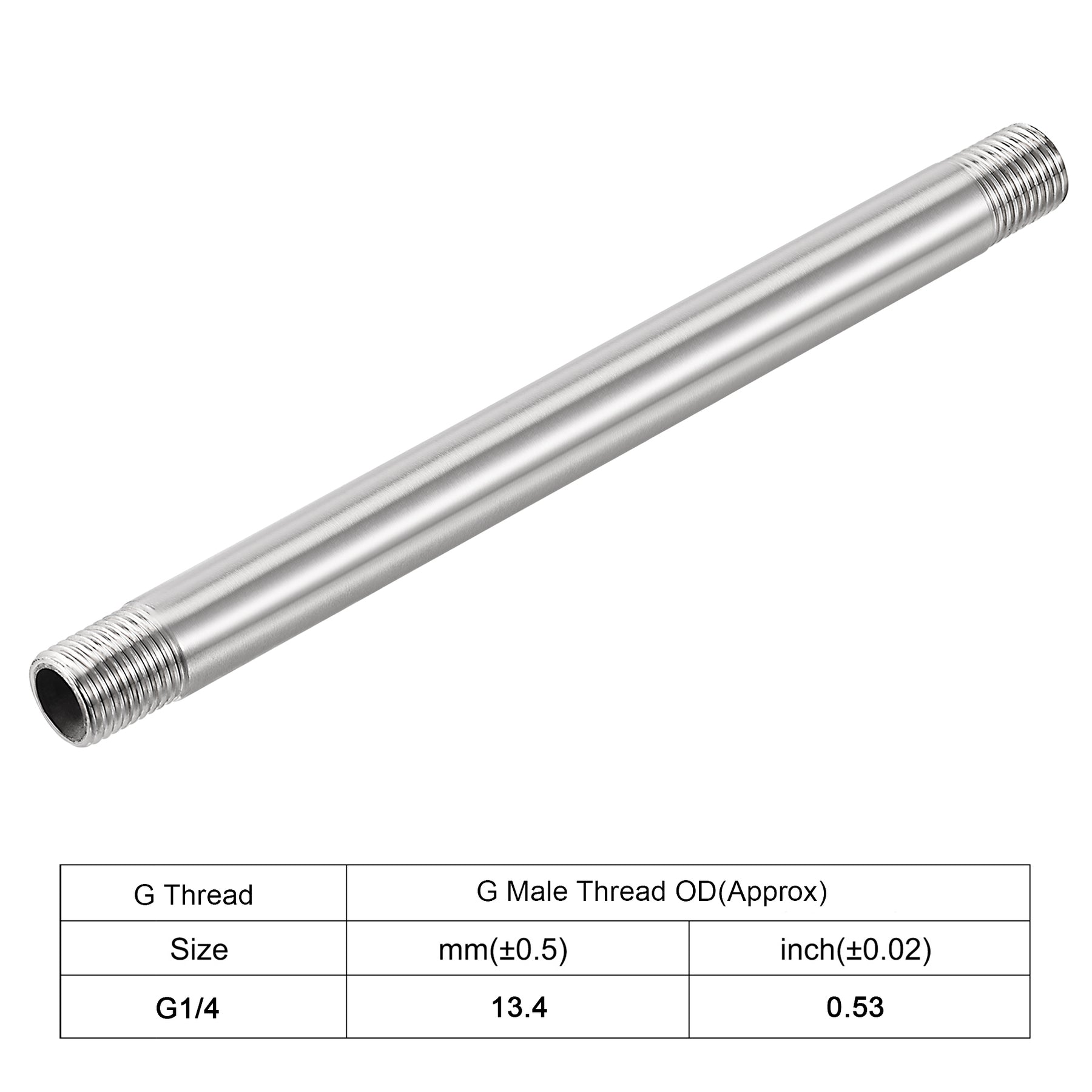 Specifications: Material: 304 Stainless Steel Male Thread Size: G1/4 (Approx. O.D. 13.4mm) Thread Length: 13mm / 0.51 inch Total Size: