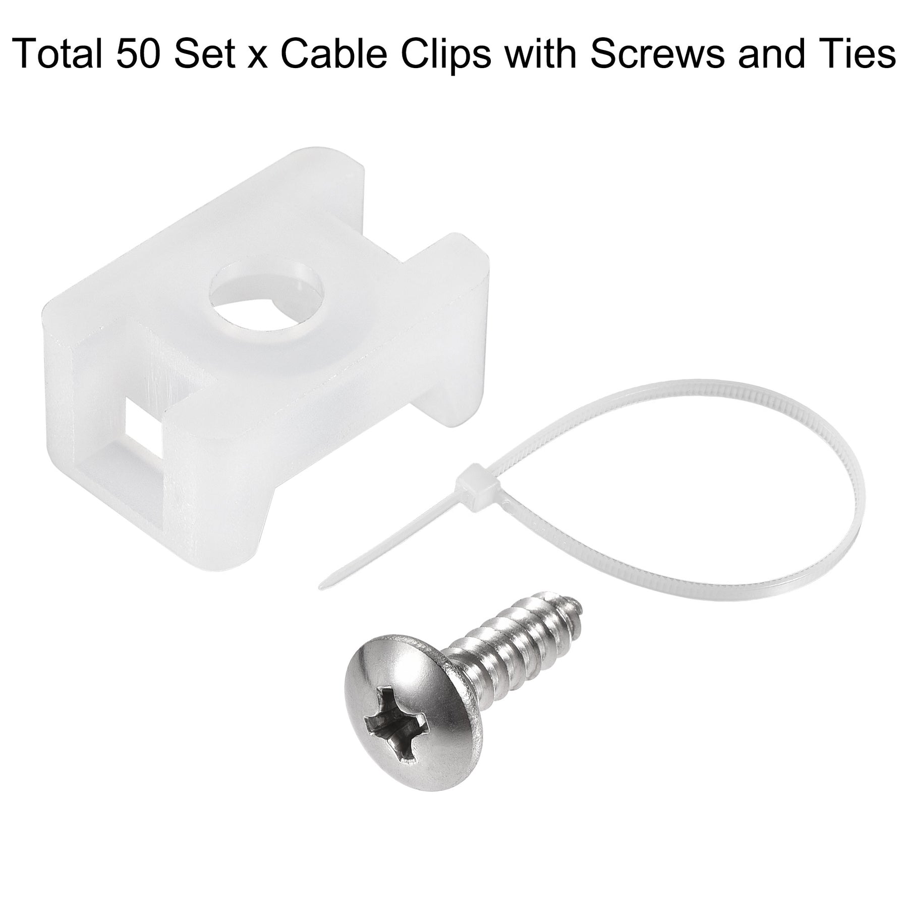 14.6mm x 10mm x 6.85mm Nylon Cable Fasten Clip with Screws and Ties White 50 Set