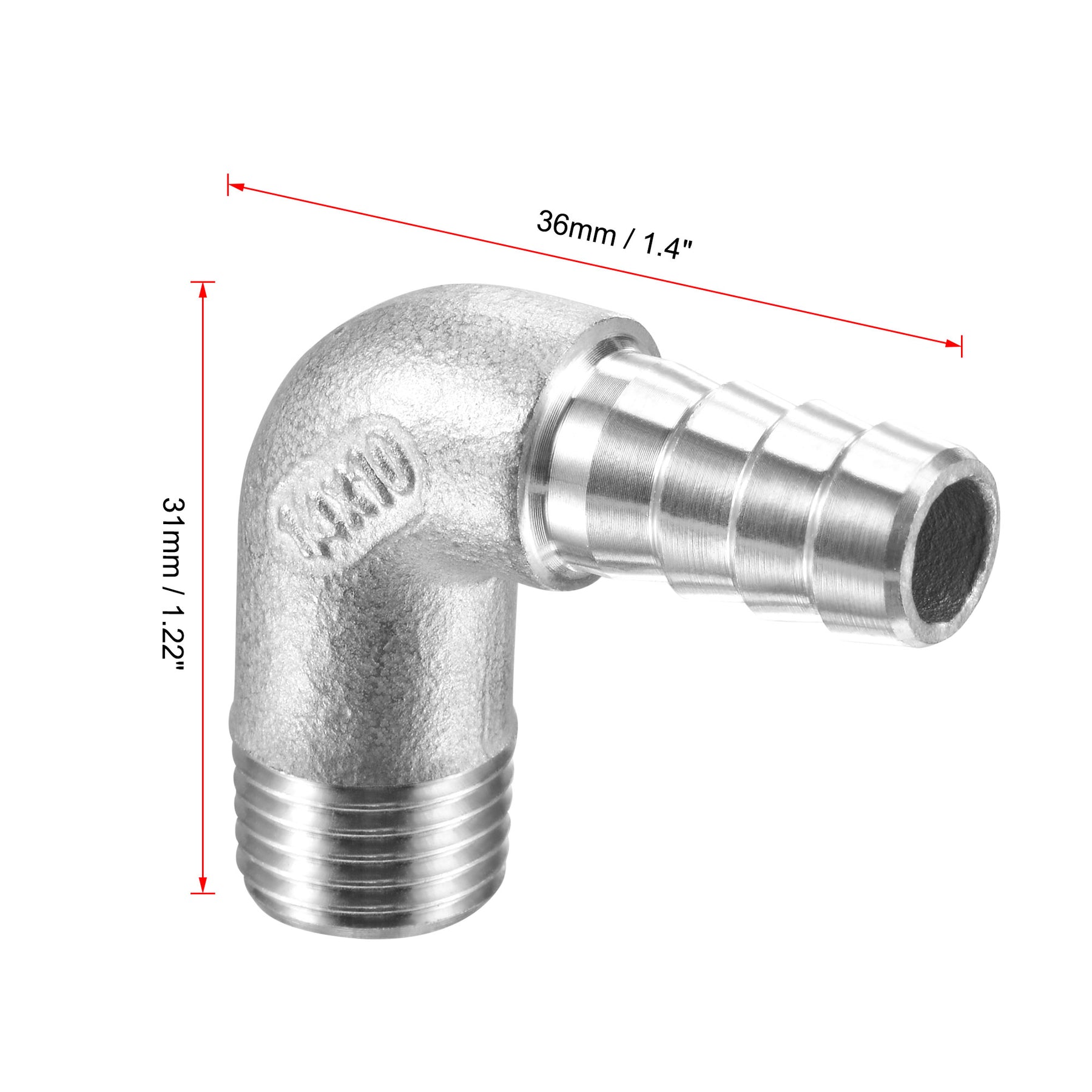 Size:12mm Size:8mm Size:10mm Features: Made of 304 stainless steel for strength and corrosion resistance. The barbed stems create a tight seal on the flexible and semi-rigid hose when used with a hose clamp or crimp sleeve or ferrule (NOT included). The 90-degree elbow pipe fitting is commonly used to connect lines for air, water, fuel, oil, and inert gases in a quick and simple way. Suitable for fluid handling applications: like acids, solvents, liquid waste, saltwater, and cooling water. Note: Before ordering, please confirm the right size!