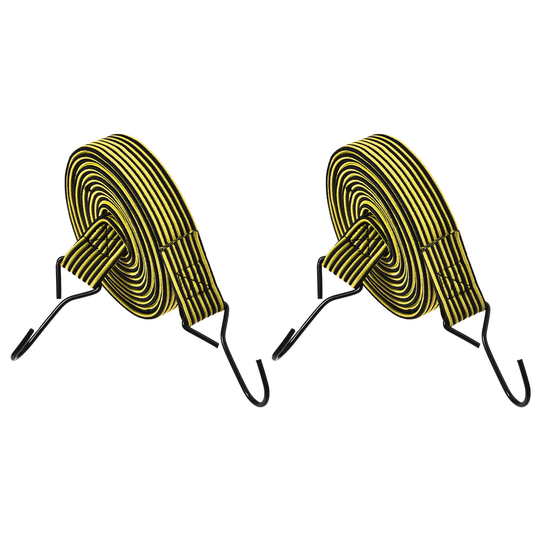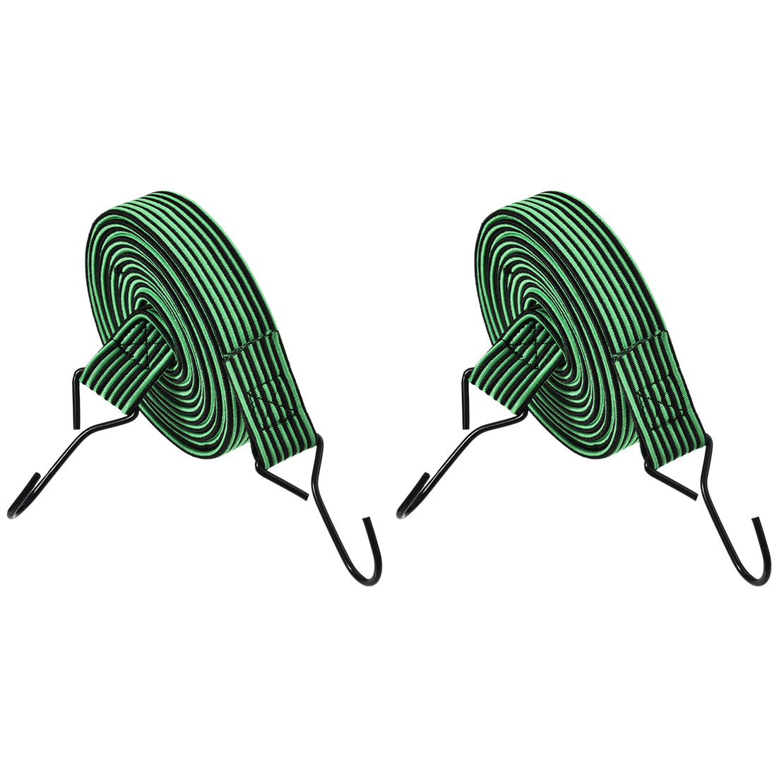 Color:Green Color:Green Color:Yellow Color:Blue Features: Comes with 2 steel double J hooks, it is convenient for you to tie down the items The inner core of the strap is made of latex silk. Good elasticity and strong aging resistance Compared with the round cord, this flat cord enlarges the stress area and disperses pressure on the stuff. It can prevent sliding and denting into the stuff Wide Applications: The flat elastic cord is used for fastening luggage or cargo to your bicycle, motorcycle or hand cart. More, it is good for securing stuff to prevent load shifts in the trucks for improving the utilization of the truck space while transporting