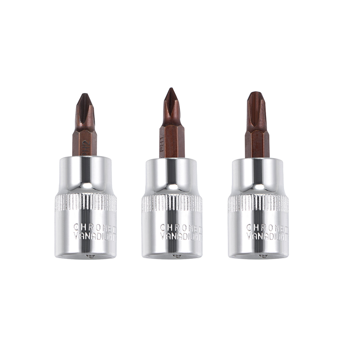 3/8" Drive x PH1 - PH3 Phillips Bit Socket Set, S2 Steel Bits, CR-V Sockets 48mm Length (For Hand Use Only)